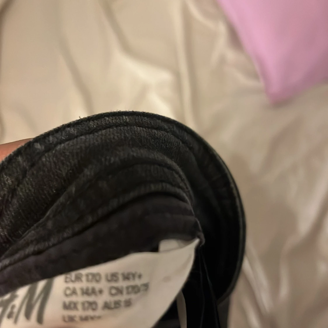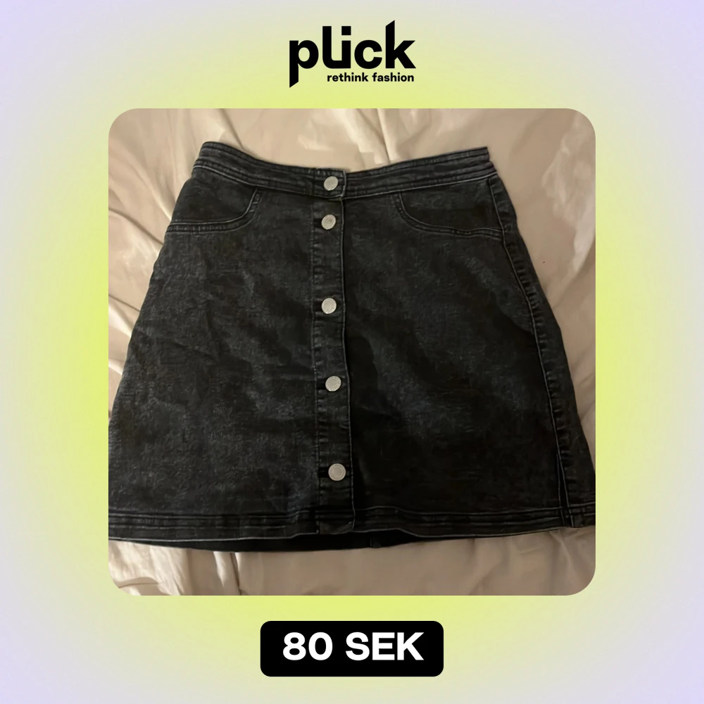 Snygg svart jeanskjol från H&M i storlek 14+. Kjolen har en rad med knappar framtill och en klassisk jeanslook. Perfekt för både vardag och fest! 🖤