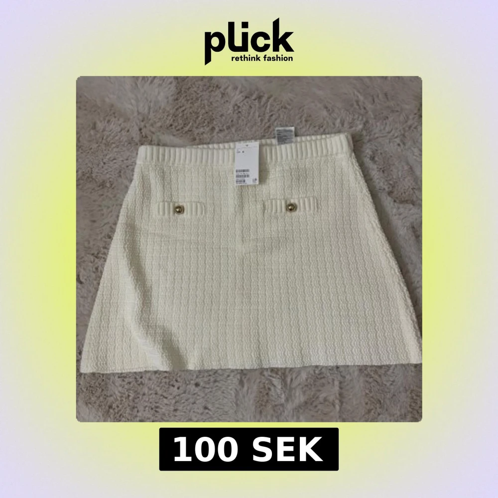 Stilren vit kortkjol från H&M i bouclé-liknande material. Kjolen har ribbad midja och två dekorativa fickor framtill med guldknappar. Perfekt för dig som gillar en klassisk och chic look.