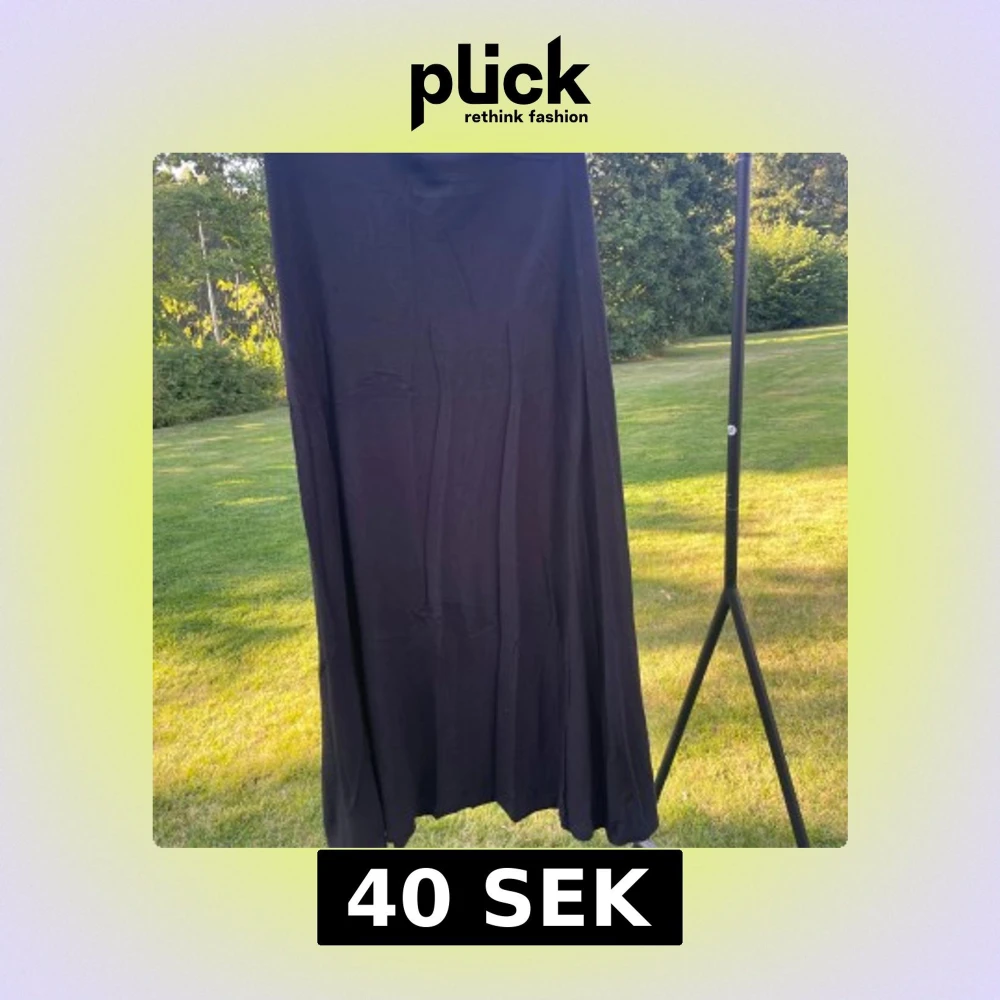 En svart långkjol från H&M i storlek S. Kjolen har en enkel och rak siluett med mjukt fallande tyg. Den är helsvart utan mönster eller detaljer och passar dig som gillar minimalistisk stil. Materialet känns lätt och bekvämt mot huden.