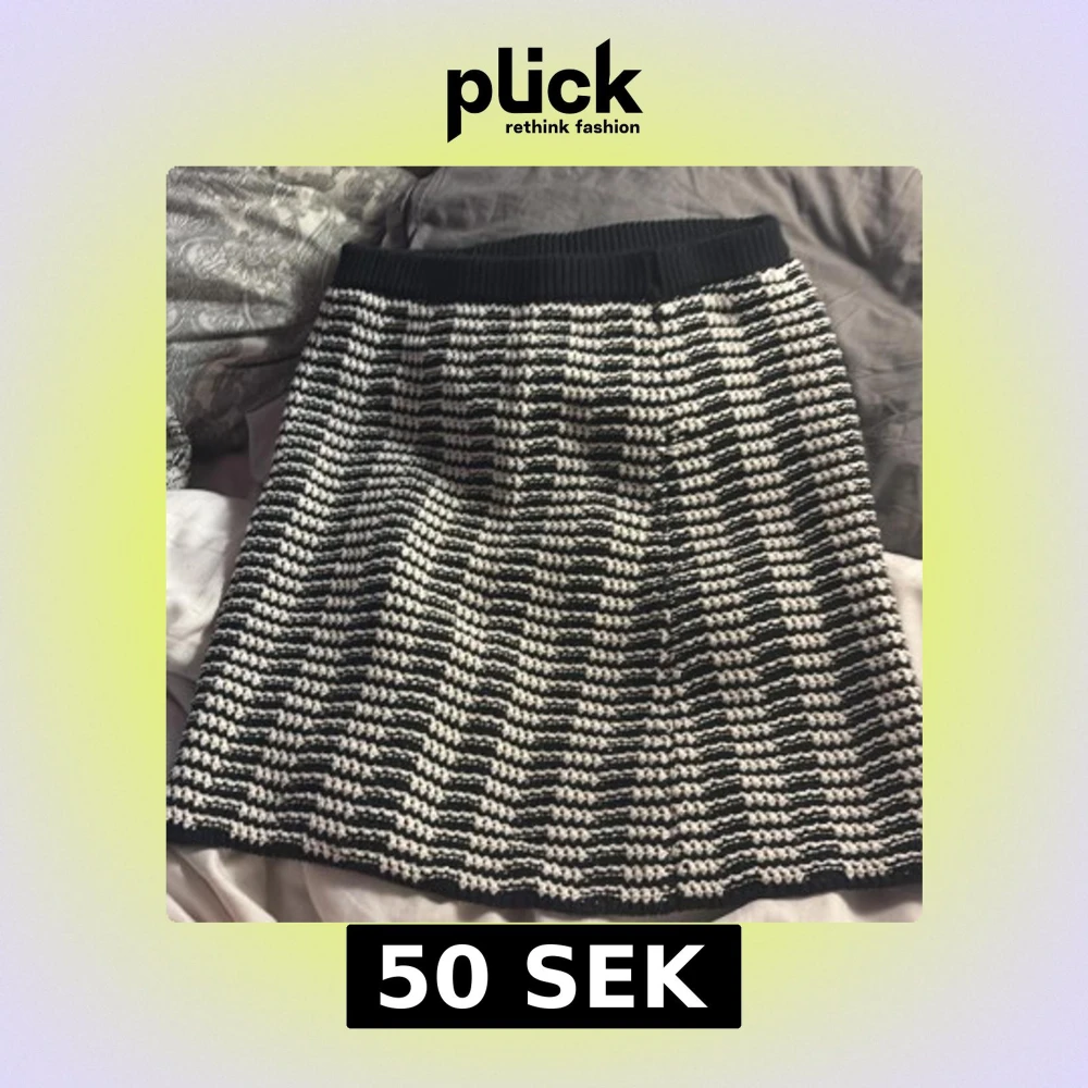 Säljer en svartvit stickad kjol från H&M i storlek S. Kjolen har ett randigt mönster och bred, ribbad midja för extra komfort. Den är kort och har en mjuk, grovstickad känsla som gör den både snygg och chill.