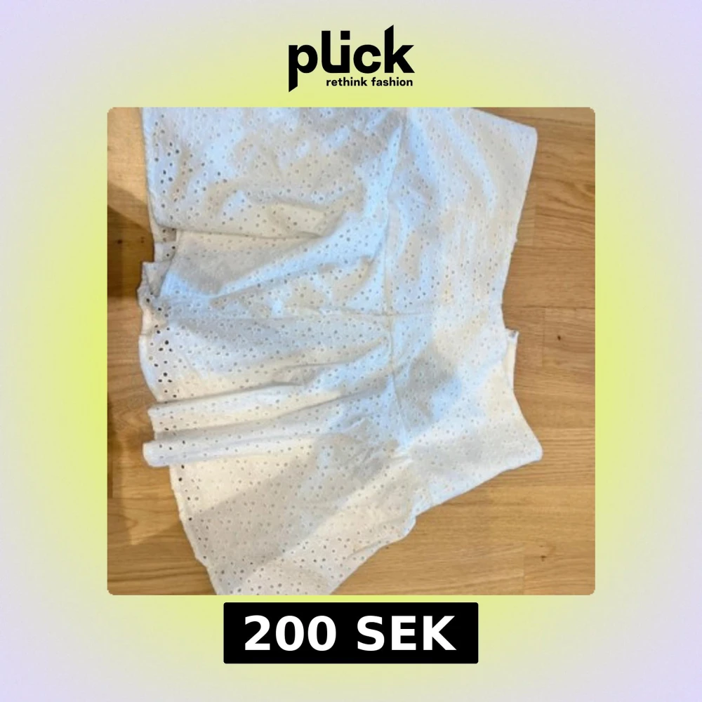 Supersöt vit kortkjol i bomull med broderade hål och lätt volang. Perfekt för varma dagar och ger en fräsch och somrig vibe. Kjolen har hög midja och är riktigt flowy och luftig.