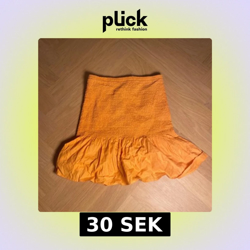 Superfin orange kortkjol med smock upptill och bred volang nertill. Kjolen har en härlig färg och är perfekt för dig som vill sticka ut. Den är lätt och luftig, vilket gör den skön att bära under varma dagar.