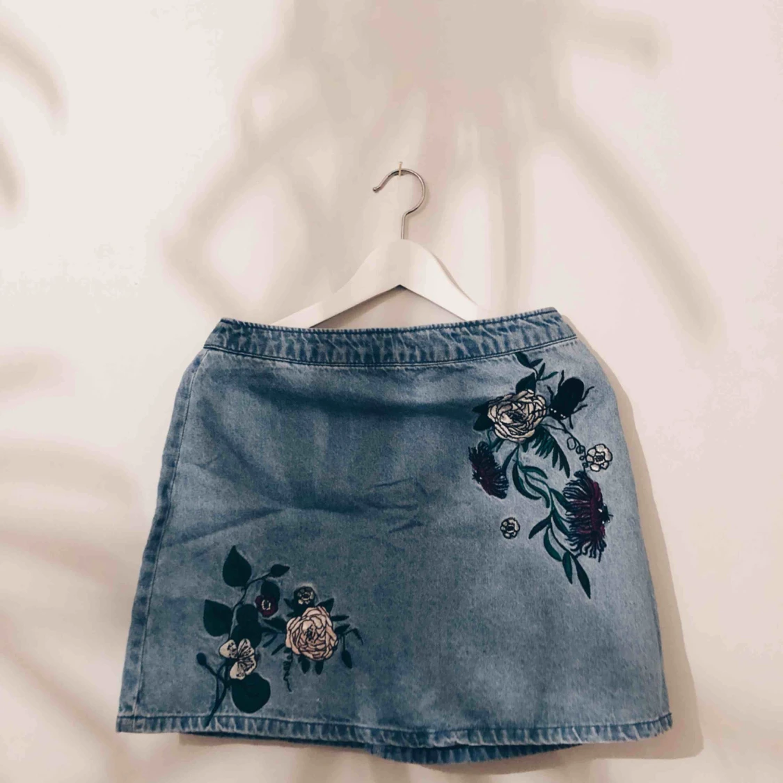 Jeanskjol med broderier från HM X COACHELLA. Skickas mot frakt eller möts upp i centrala STHLM.