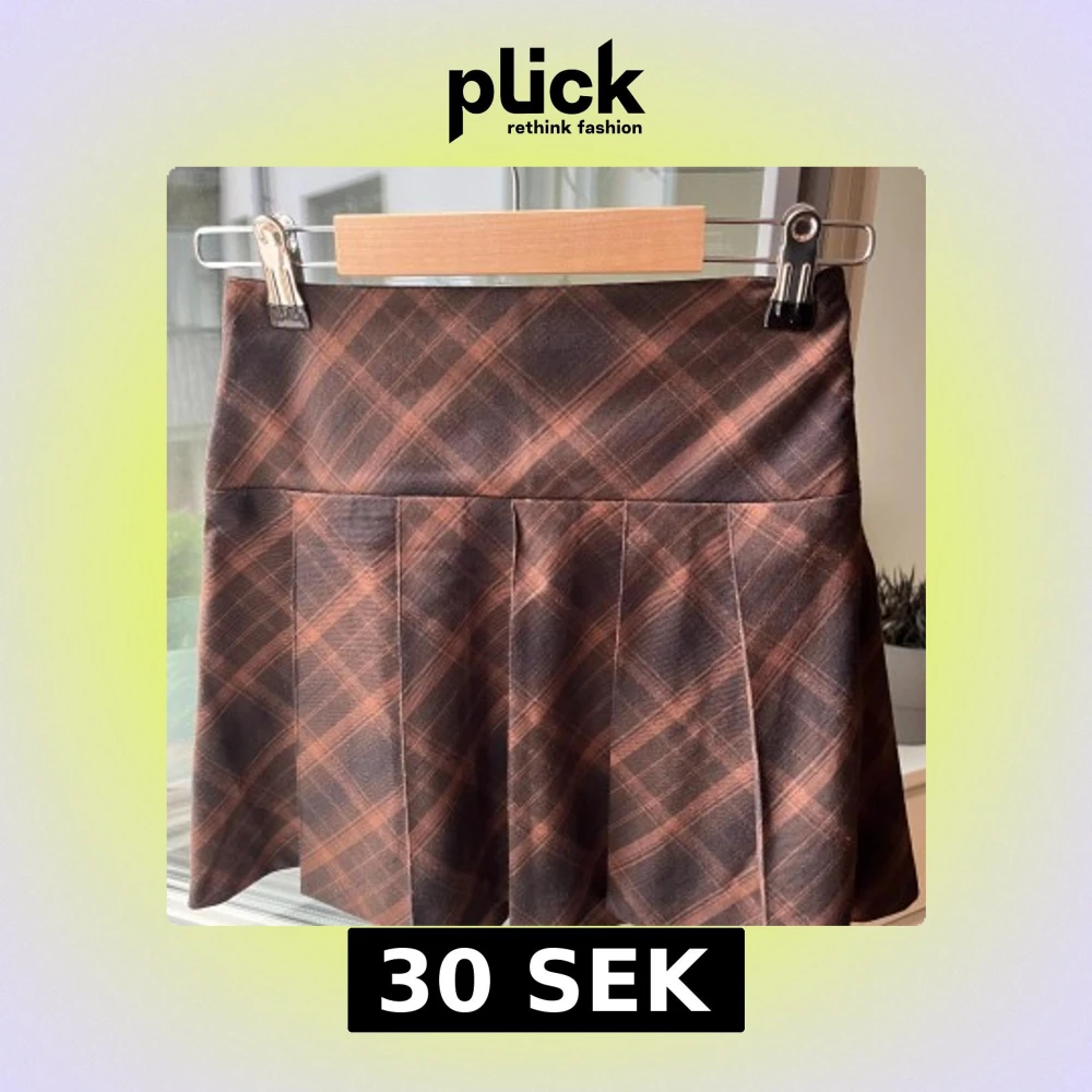 Supersnygg brunrutig kortkjol från H&M Divided i storlek 32. Kjolen har klassiska veck och är gjord i mjuk polyester med lite stretch för skön passform. Perfekt för dig som gillar preppy vibes och vill sticka ut med ett coolt mönster.