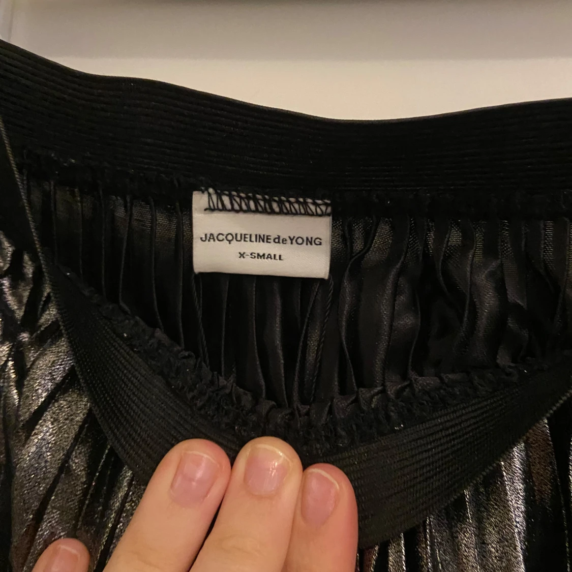 Snygg silverfärgad kjol från Jacqueline de Yong i storlek XS. Kjolen har en glittrig finish och är perfekt för festliga tillfällen. Den har en elastisk midja för en bekväm passform och är i ett lätt och flödande material. Den är även väldigt stretchig och perfekt till nyår💕