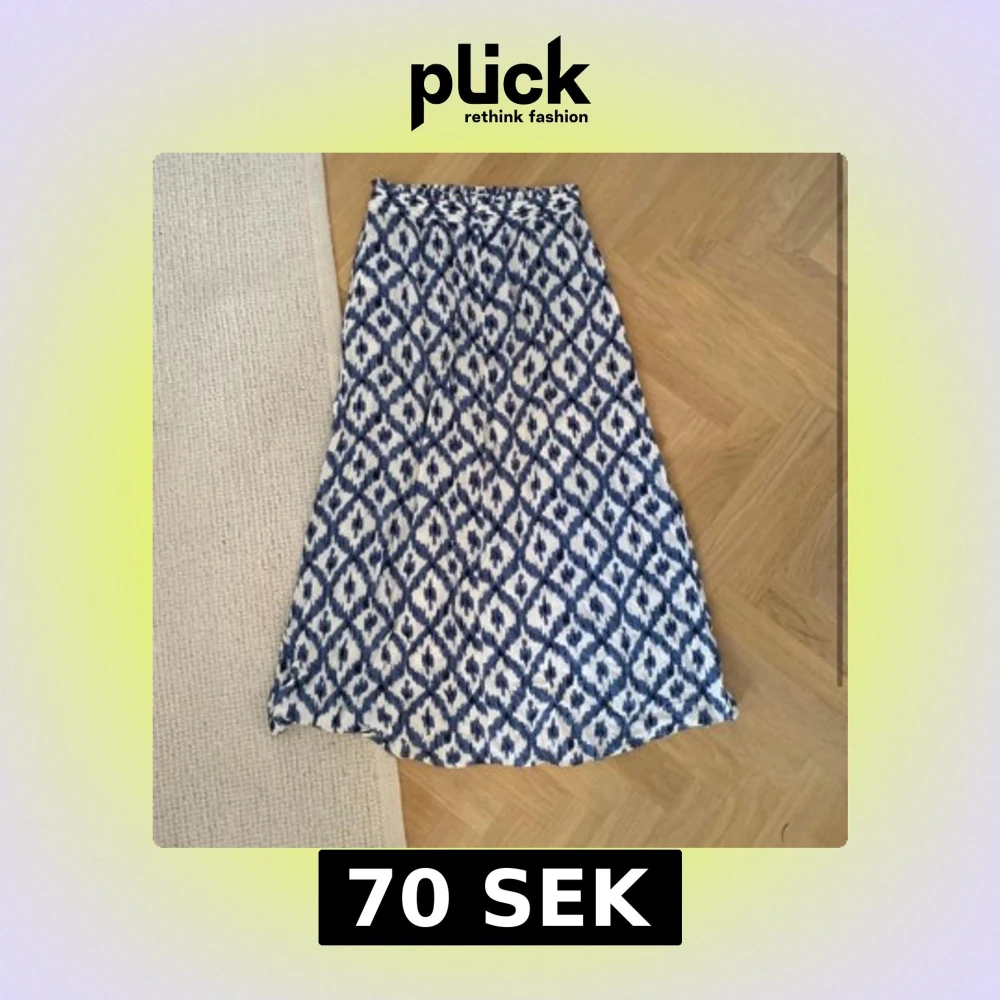Snygg långkjol med blått och vitt grafiskt mönster. Kjolen har en lätt utställd form och är perfekt för dig som gillar bohemiska vibbar. Tillverkad i ett mjukt och luftigt material som känns skönt mot huden.