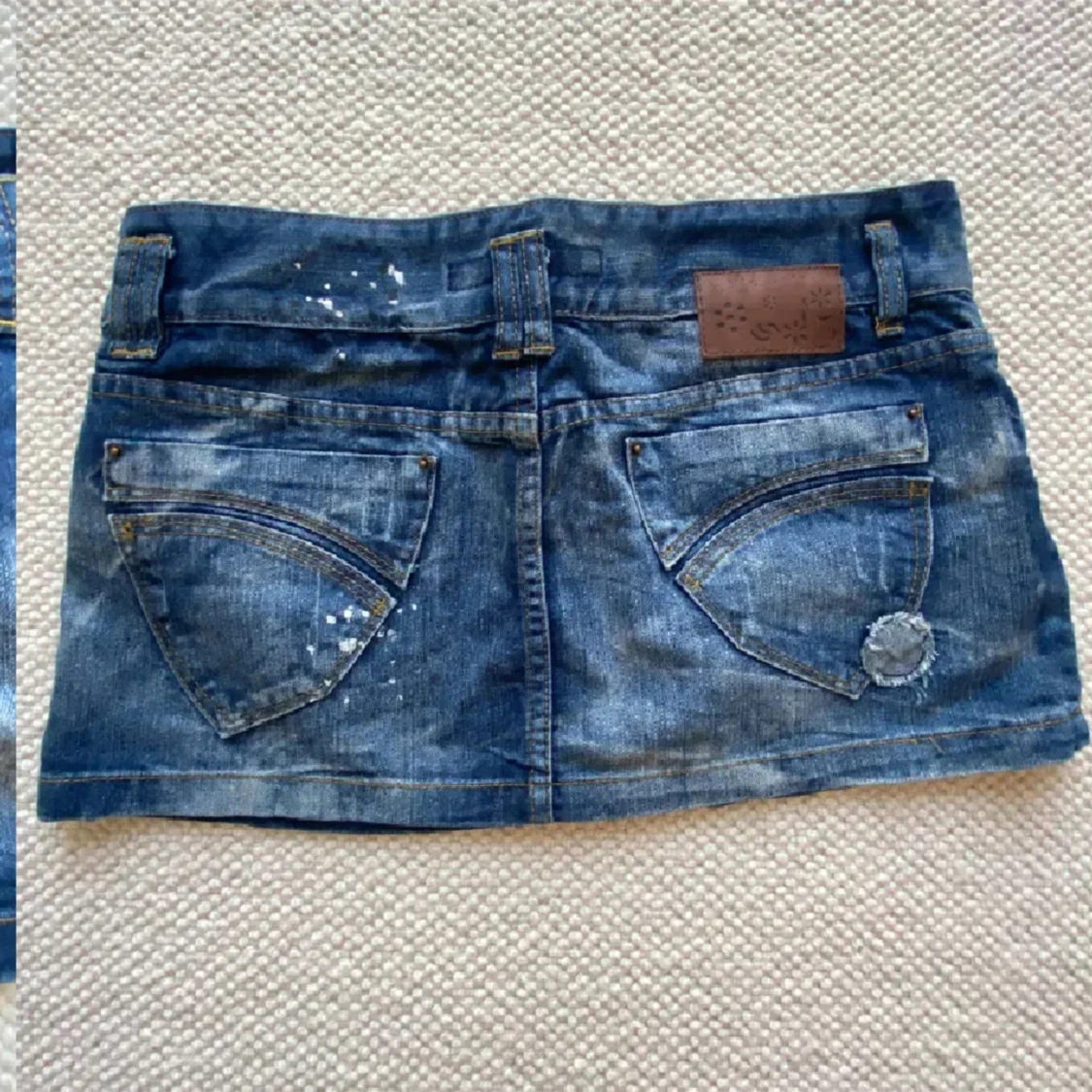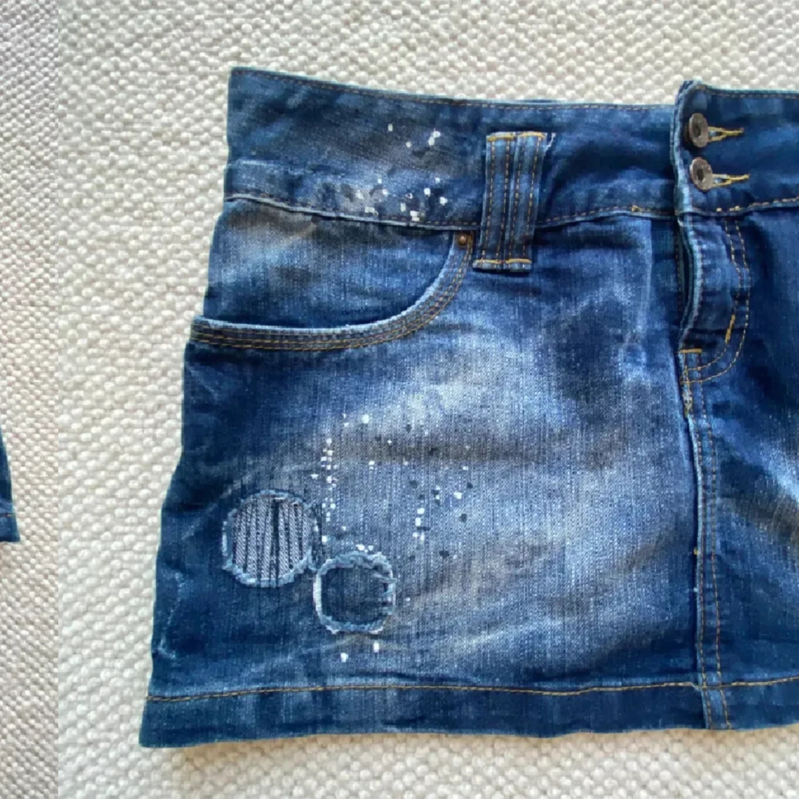 Jeans kjol, storlek s💙🩵med coola detaljer! (Har ej bilder med den på) midjemått 43x2 och längd 30 cm