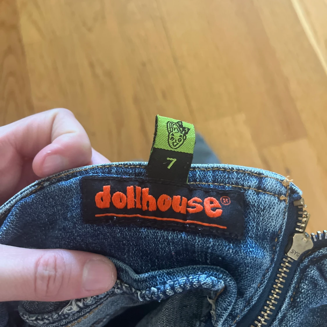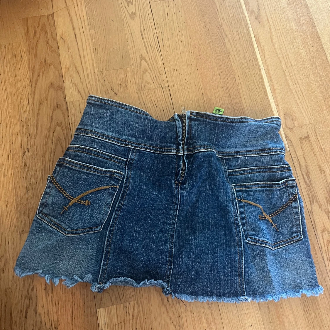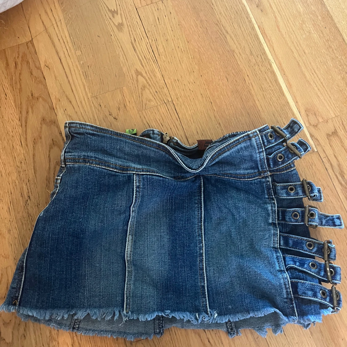 Cool blå jeanskjol från Dollhouse med rå kant nertill och flera snygga spännen i sidan. Kjolen har bakfickor med broderade detaljer och dragkedja bak. Perfekt för dig som gillar en edgy och unik stil. Står storlek 7 inuti men skulle säga att det är en storlek 34/36.