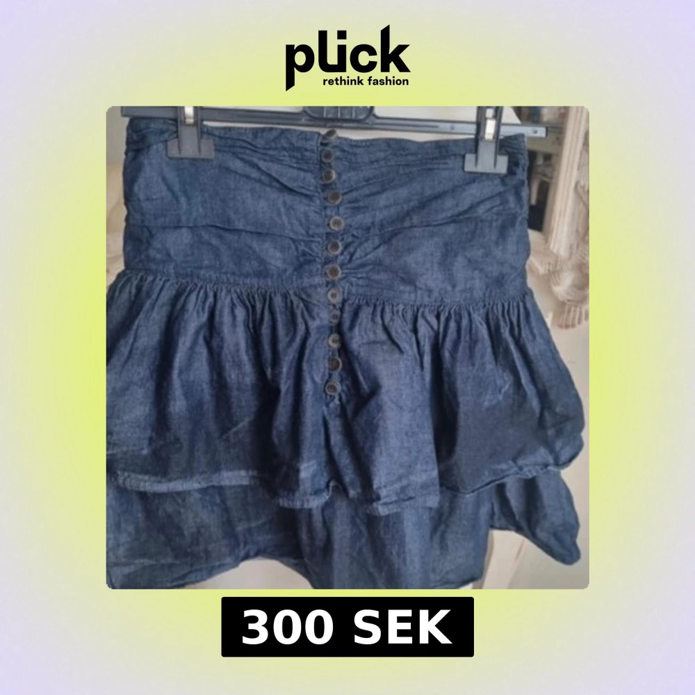 Supersöt mörkblå jeanskjol från Zara Woman med volanger och knappar på sidan. Kjolen är jätte fin med en tex vit T-shirt till och passar perfekt nu till sommaren en vardag eller utekväll. Storlek är m men passar mig som brukar ha 34-36 i storlek! Inga defekter.