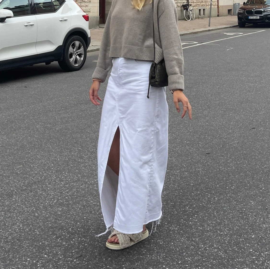 Säljer denna vita maxi jeanskjol från zara i strl M, endast använd en gång🫶🏼