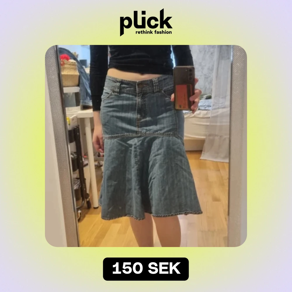 En jeanskjol från Kappahl. Insydd i midjan till 72cm omkrets.