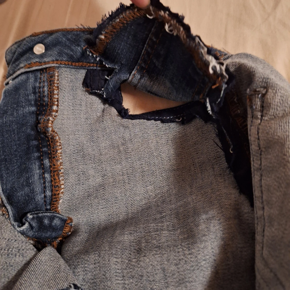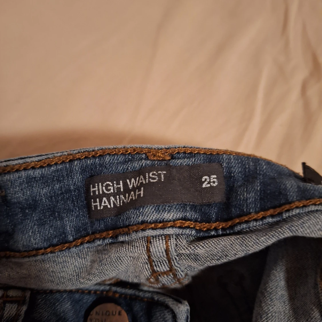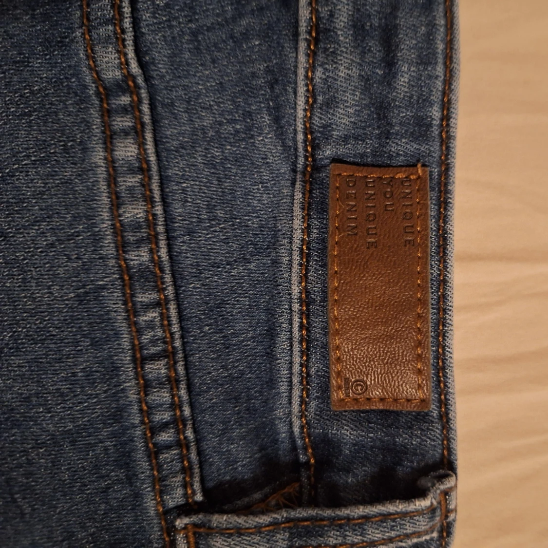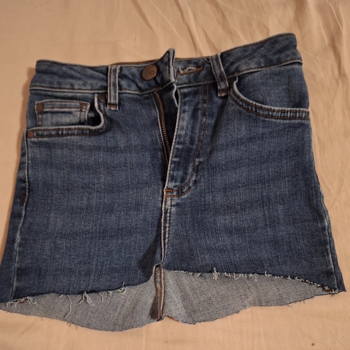 Snygg jeanskjol från Unique Denim. Har gjort den själv åh råkade då klippa loss fockpåsarna på framfickorna men det är inget som syns när den används. Den är ganska tajt i midjan.