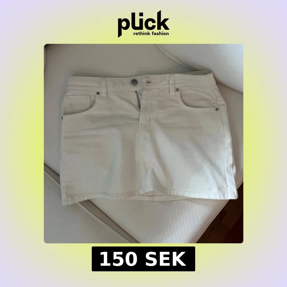 Säljer en vit kort jeanskjol med klassisk femficksdesign och knapp- samt dragkedjestängning framtill. Kjolen har raka linjer och är perfekt för en stilren look. Passar till många olika outfits och är enkel att matcha.