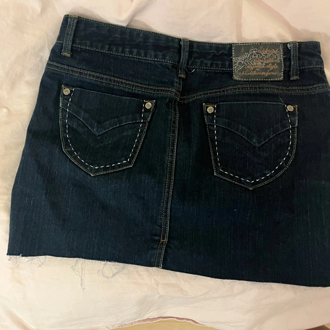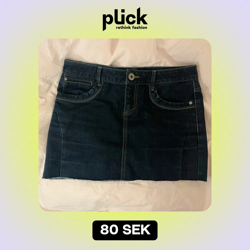 Mörkblå jeanskjol med coola sömmar på fickorna! 🤍Köpt secondhand och det står ingen storlek men den är lite lös på mig som vanligtvis har S