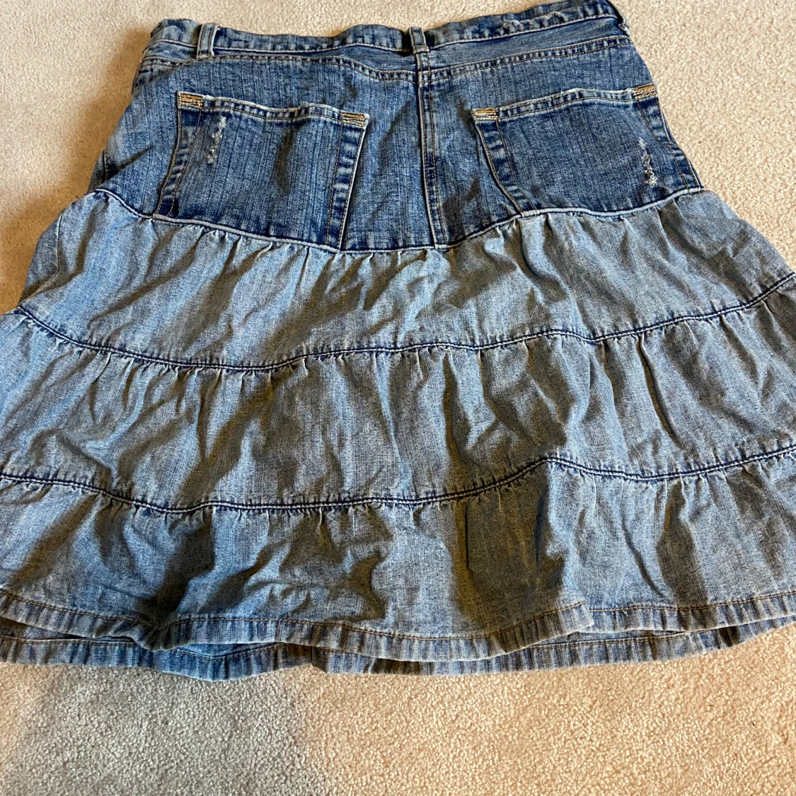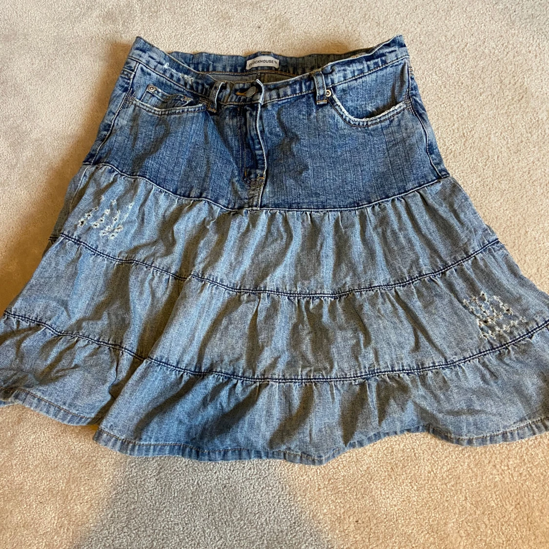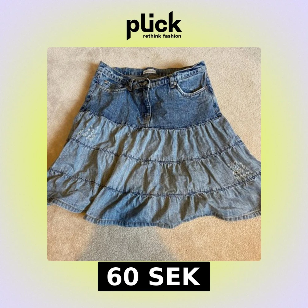 Säljer en jeanskjol från Clockhouse med volangdetaljer. Kjolen har en avslappnad passform och är perfekt för en casual look. Den är i en klassisk blå denimfärg och har fickor både fram och bak 💞