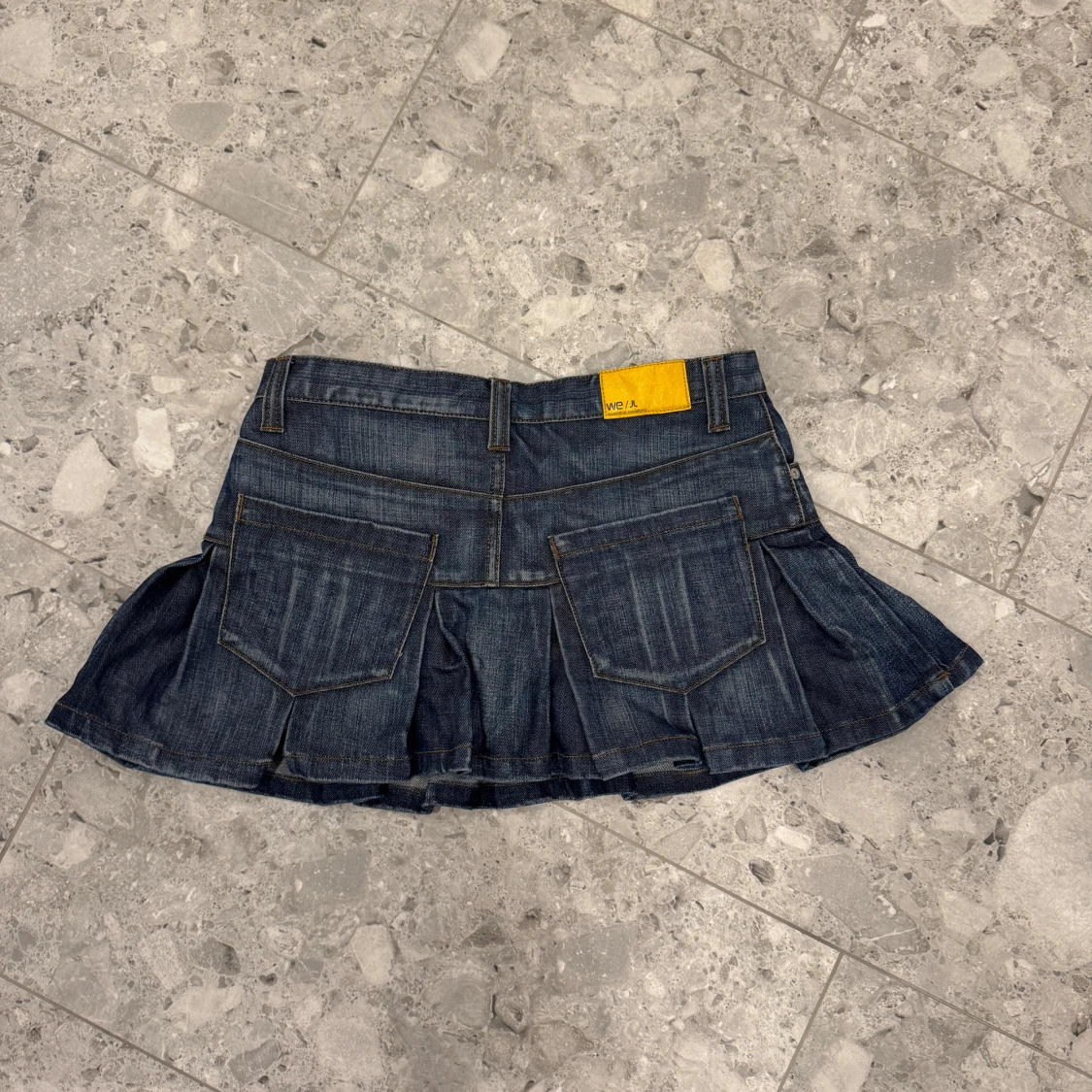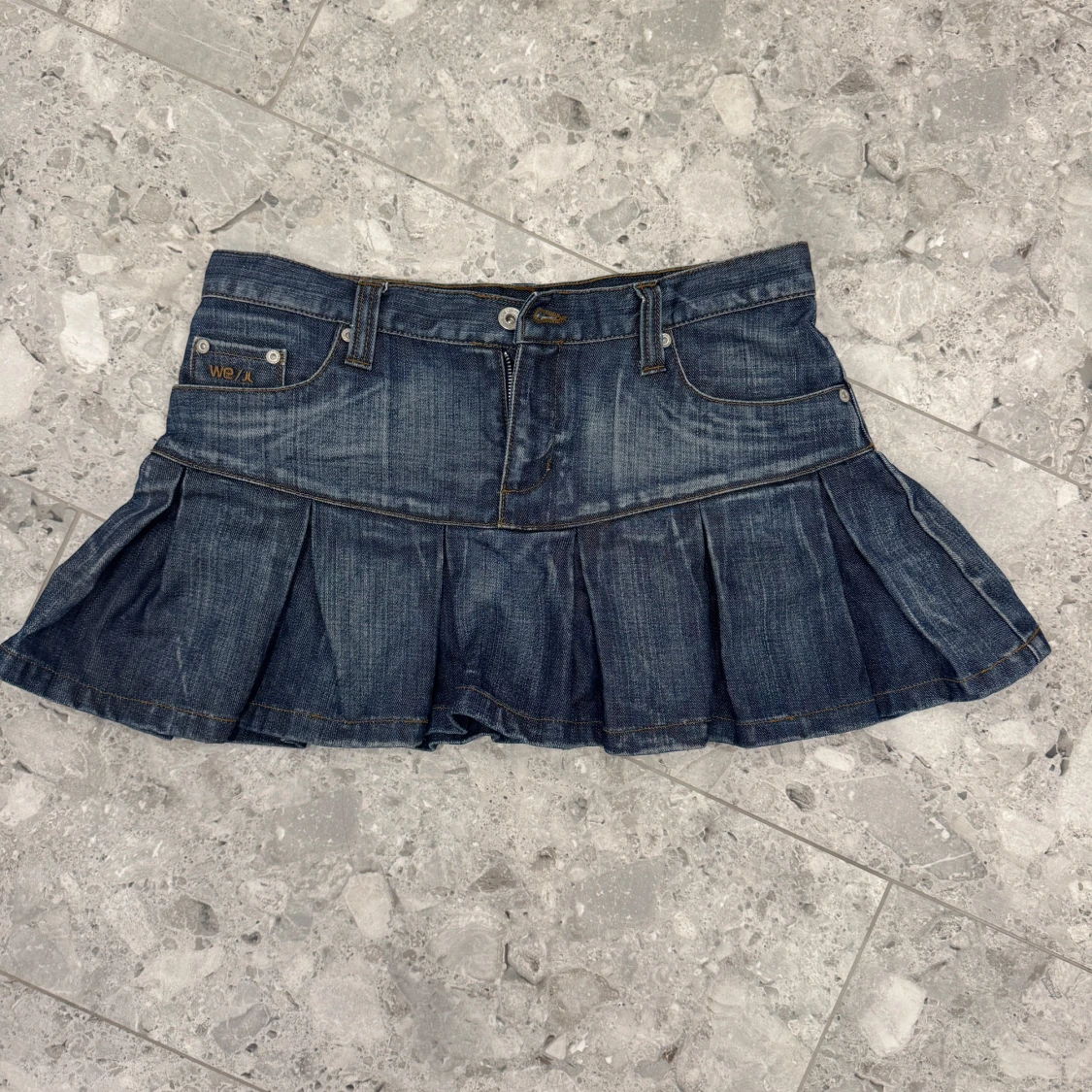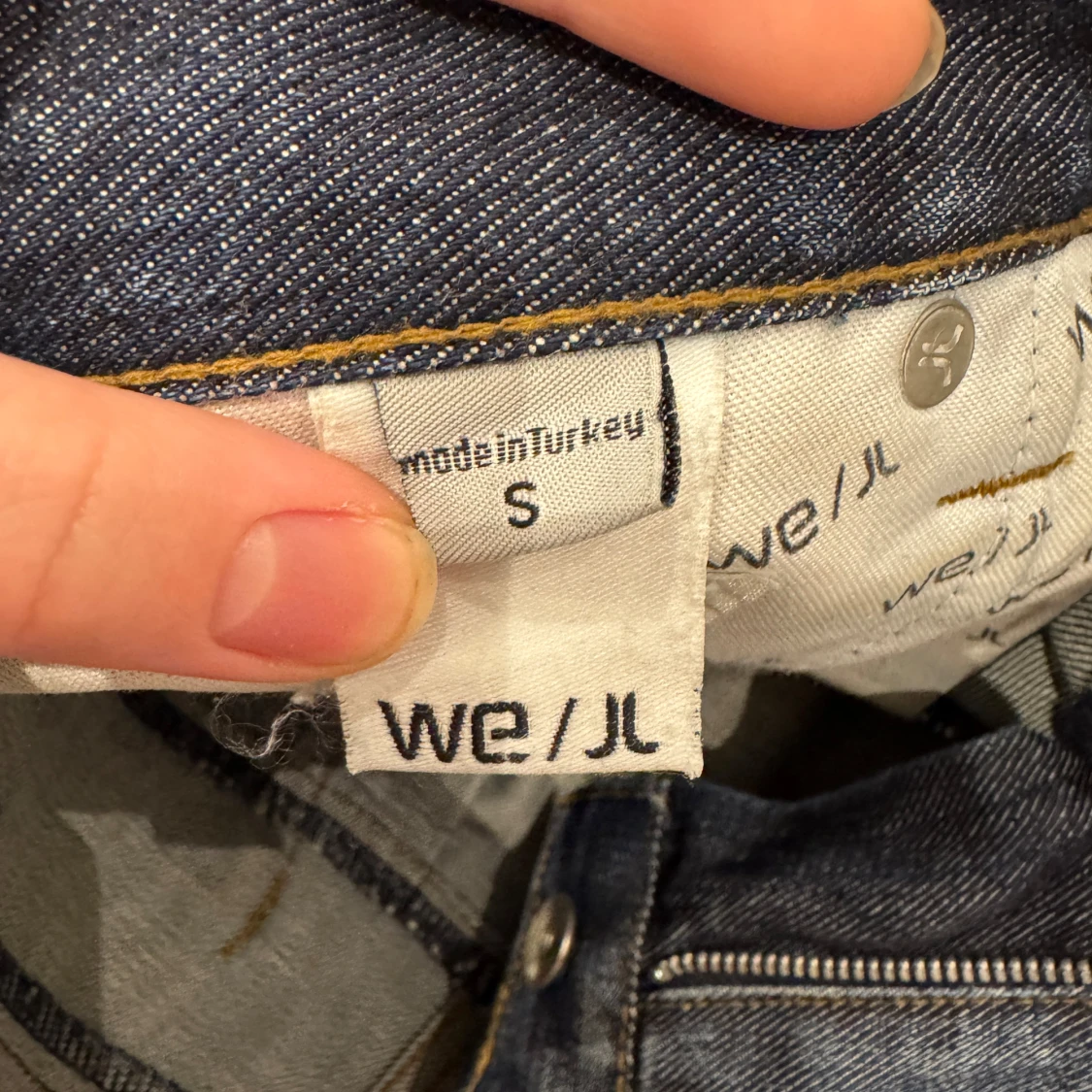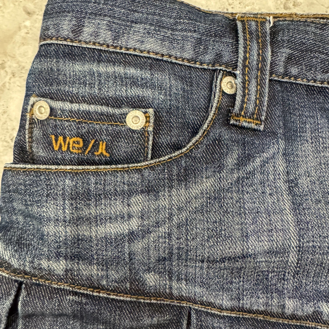 Mörkblå jeanskjol från WE/JL med volang nertill och fickor både fram och bak. Kjolen har en kort passform och är i denim, det står S på lappen men jag skulle säga att den passar mer som en M. Mycket bra skick!!
