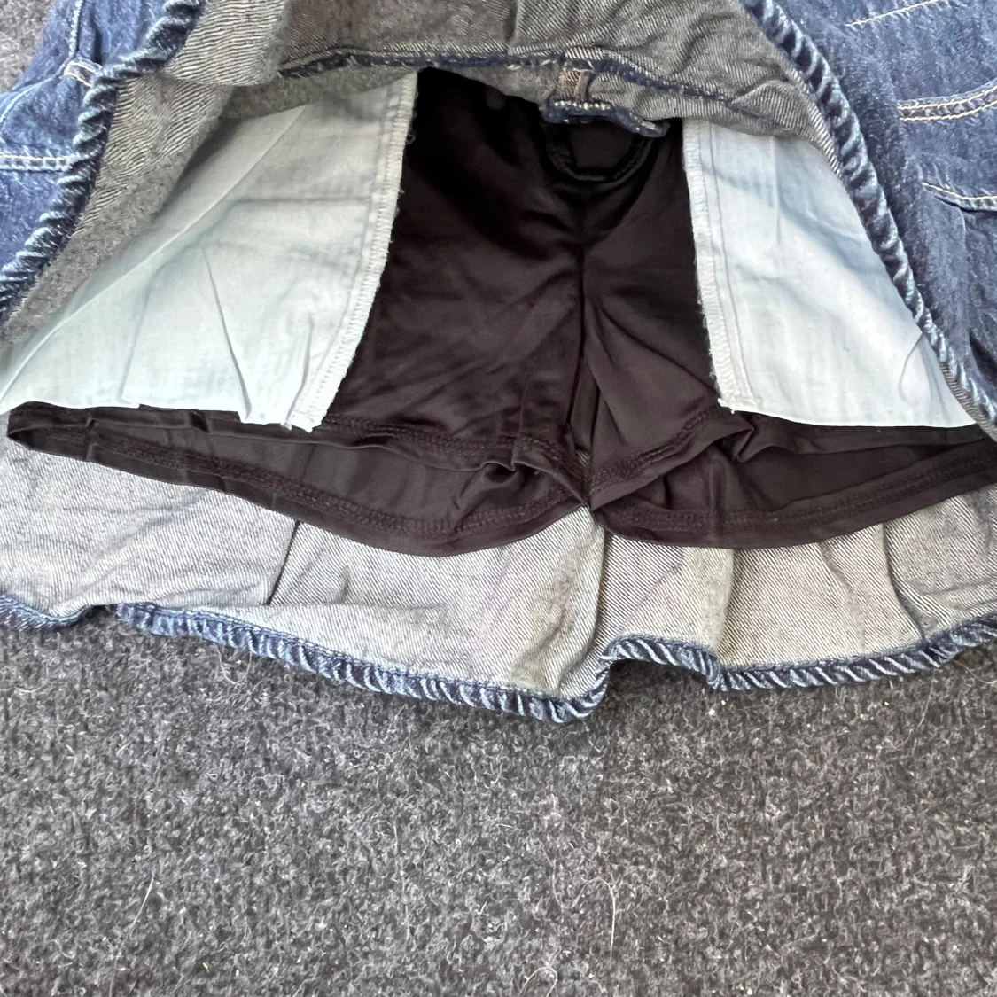 Supersöt jeanskjol från Hollister med inbyggda shorts💓 Den är i bra skick och inte stretchig, ca 39cm rakt över midjan😇