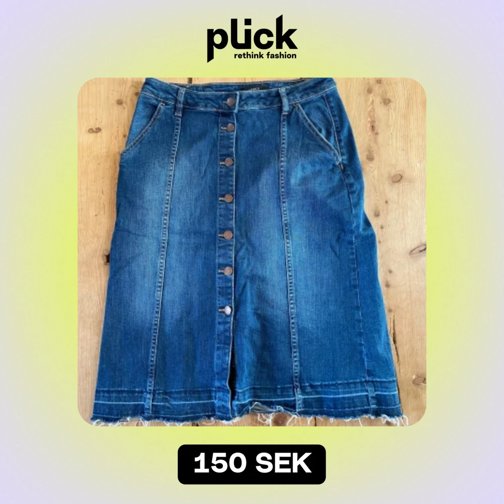 En jeanskjol jag köpt secondhand för ett år sedan, men som jag använt väldigt sällan. Den är inte upplagd (se längst ner på kjolen), men jag har använt den utan att lägga upp den. Det är upp till köparen att lägga upp isf :) Bra skick :)