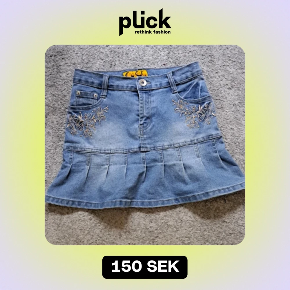 Superfin jeans kjol med guldiga broderier. Köpt på secondhand men inga tecken på andvändning. Skriv gärna vid funderingar!