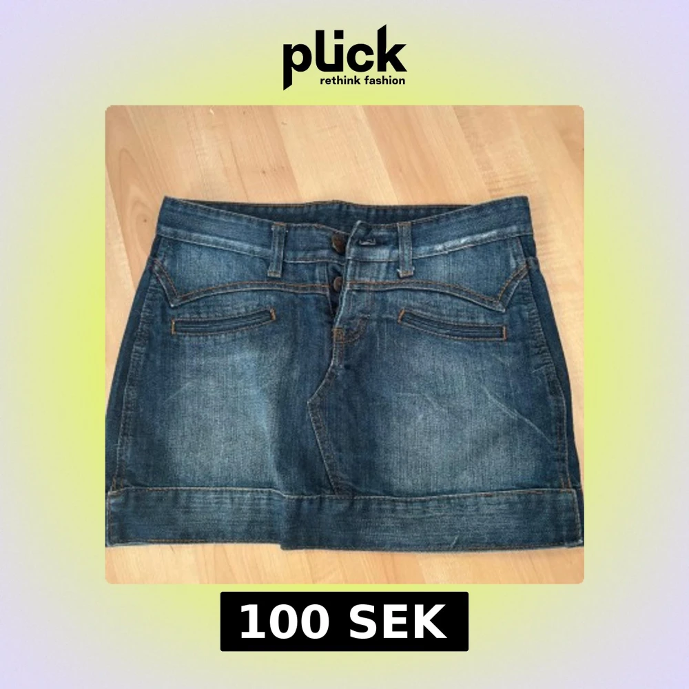 Snygg jeanskjol i klassisk blå denim med två framfickor och bälteshällor.