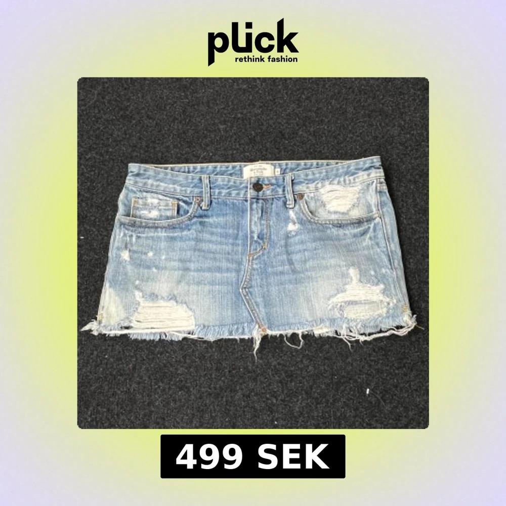 Världens snyggaste jeanskjol i mycket bra skick! Inga defekter💓 Den har slitningar som är del av designen och mått finns på bilderna😇💓
