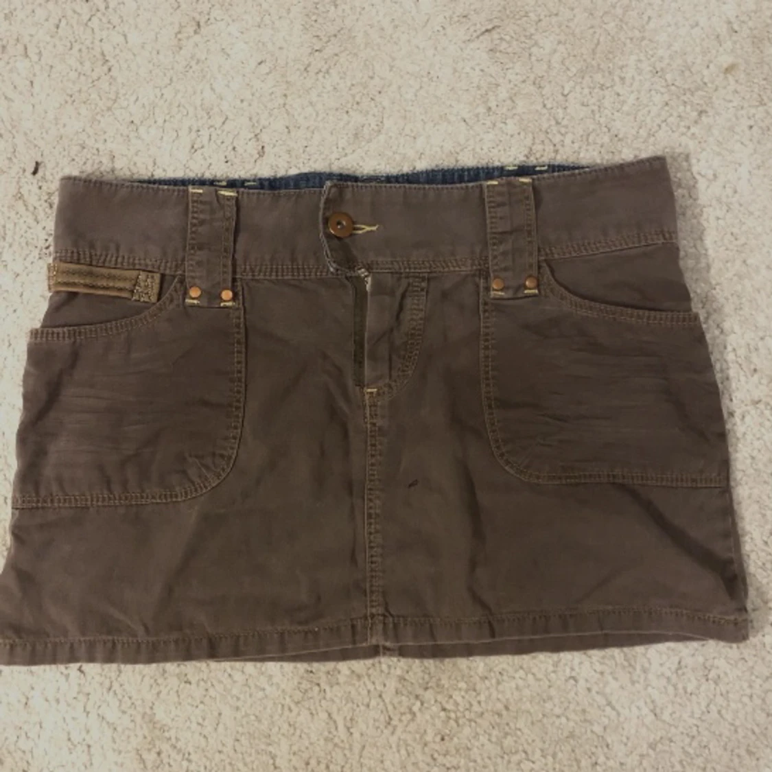 Jättecool lågmidjade y2k brun jeanskjol, mycket bra skick! Från gamla BikBok köpt på 2000-tal.