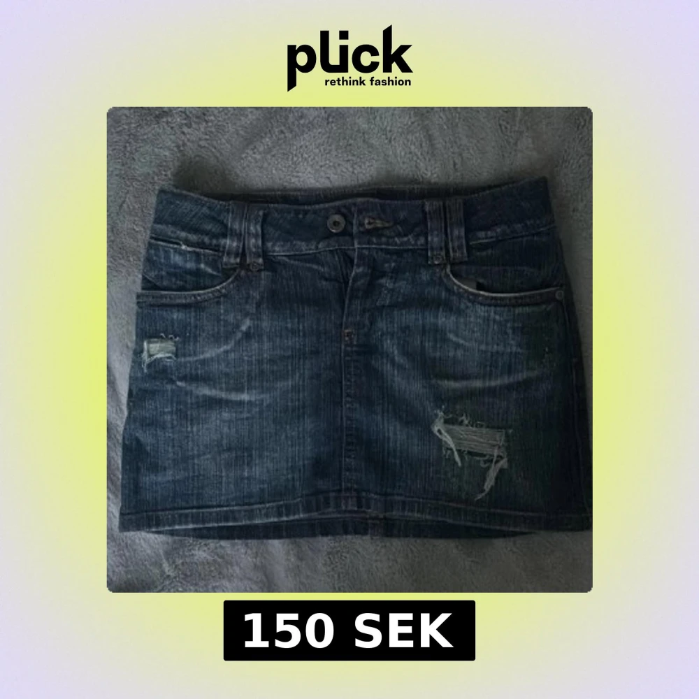Säljer en mörkblå jeanskjol från only med coola slitningar framtill och snygga bakfickor. Kjolen har klassisk knapp och dragkedja, samt en hjärtdetalj på bakfickan. Lågmidjad och lagom kort