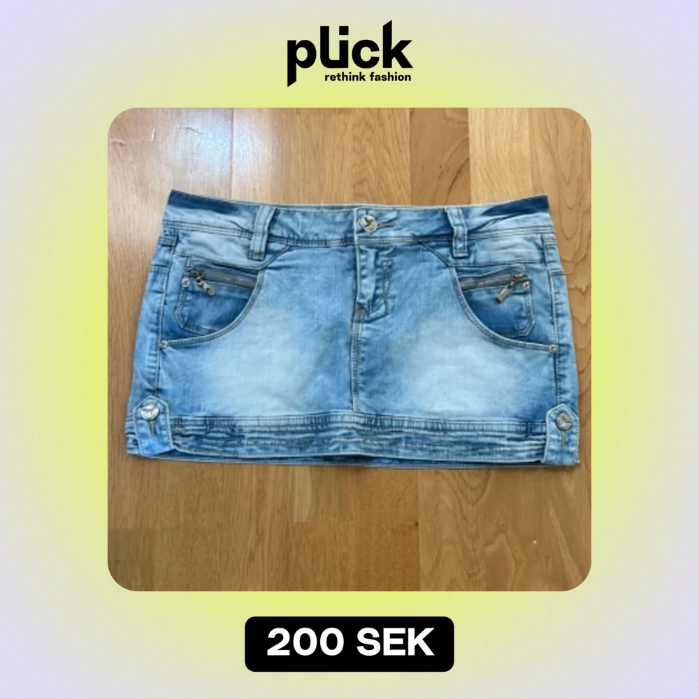 Minikjol i jeans, jättefin verkligen men tyvärr för stor för mig så måste sälja den 🙁 Storlek 30, skulle säga motsvarar M. 41cm rakt över i midjan, 29cm ner! Har jättesnygga detaljer överallt 😍