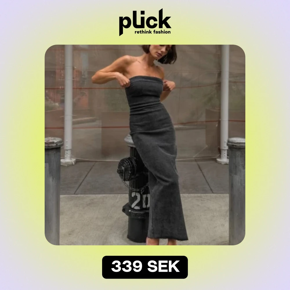 Supersnygg och smickrande jeans klänning med slit baktill, storlek 32/xxs. Från nakd men slutsåld♥️