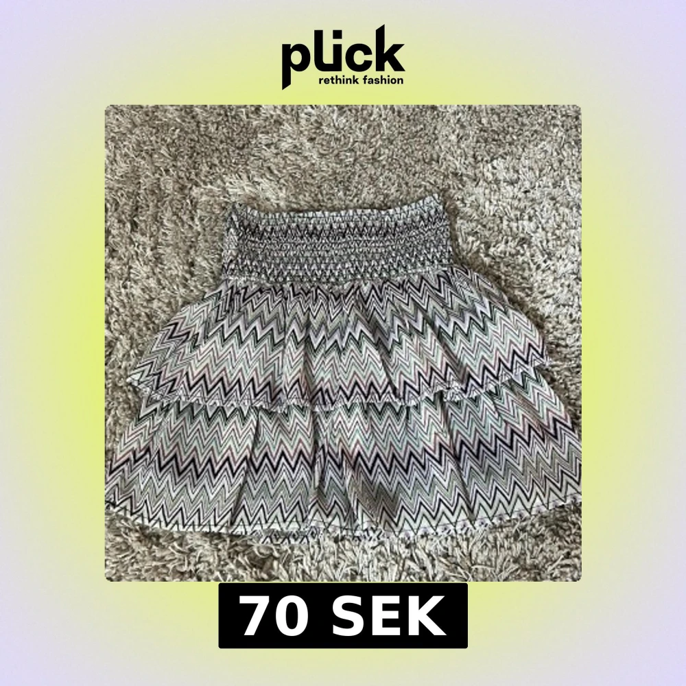 Supersöt kortkjol från KappAhl med färgglatt zickzackmönster i svart, lila, grön och vit. Kjolen har smock i midjan och volangig design som ger en lekfull vibe. Perfekt för dig som gillar att sticka ut med coola mönster och mjuka material.
