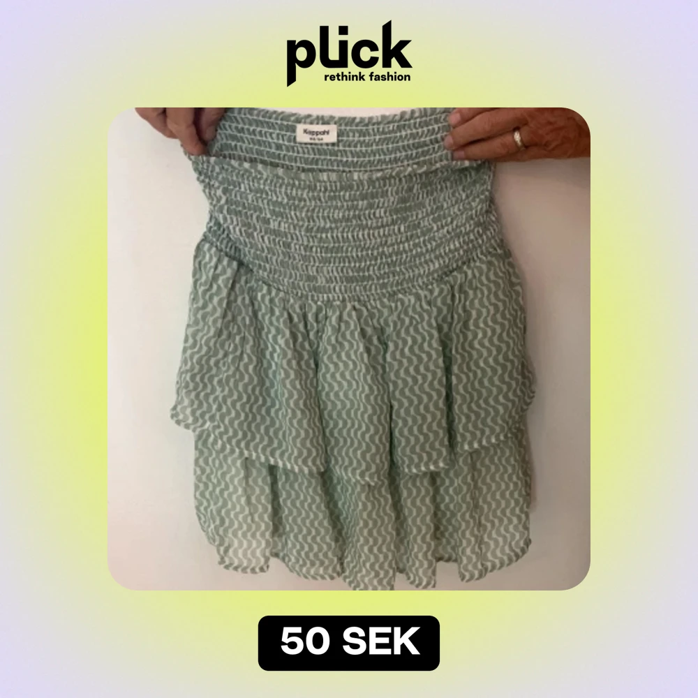 Säljer en superfin grön kjol från Kappahl med vågigt mönster. Kjolen har en smockad midja som ger en bekväm passform och volanger som ger en söt look. Perfekt för sommardagar eller en avslappnad fest! 🌿