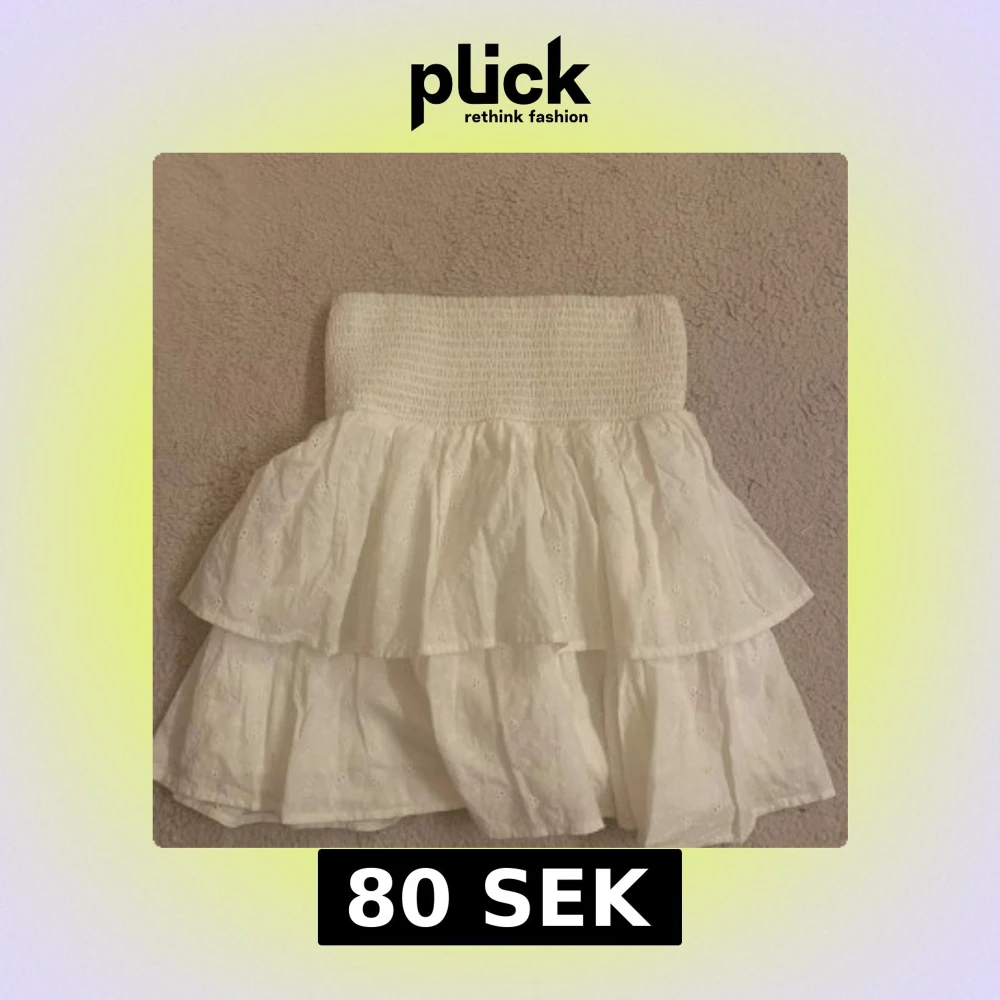 Supersöt vit kortkjol från KappAhl med bred smock i midjan och dubbla volanger. Kjolen har broderade små hålmönster och är gjord i bomull, perfekt för en fräsch och somrig look.🌸