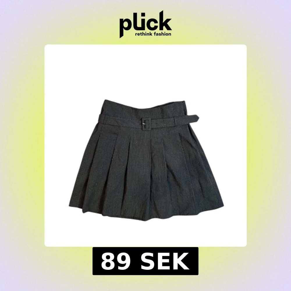 Snygg svart knäkjol med skärp i kostymliknande material. Den har diskutera ränder som jag hoppas att man ser tydligt på bild. Även en kedja i sidan för att underlätta när man ska ta på och av. Köpt second hand men tyvärr lite för stor till mig och därav aldrig använd. Storlek: 36