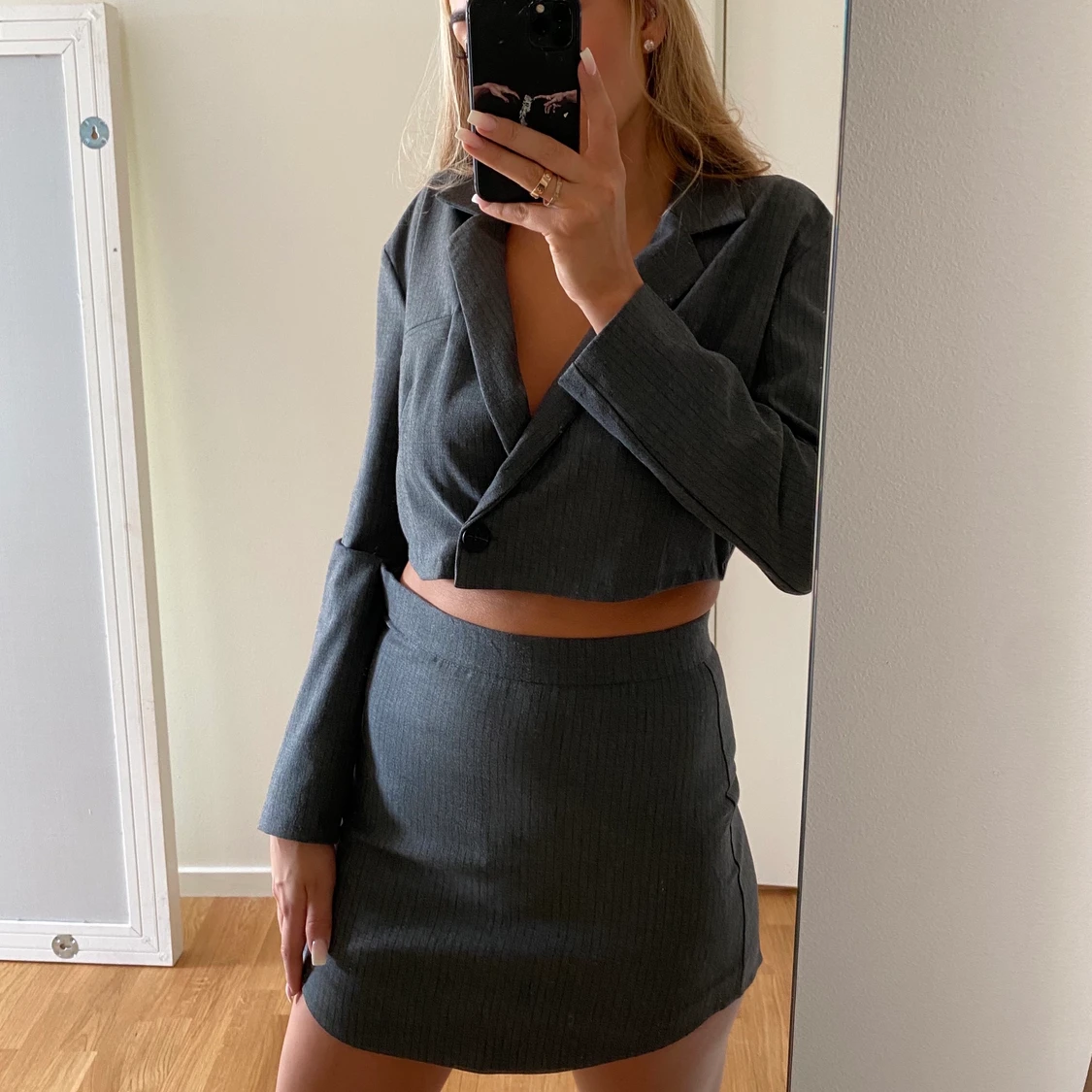 Snyggt kostym set i grått randigt från zara! Sälja tillsammans:)
