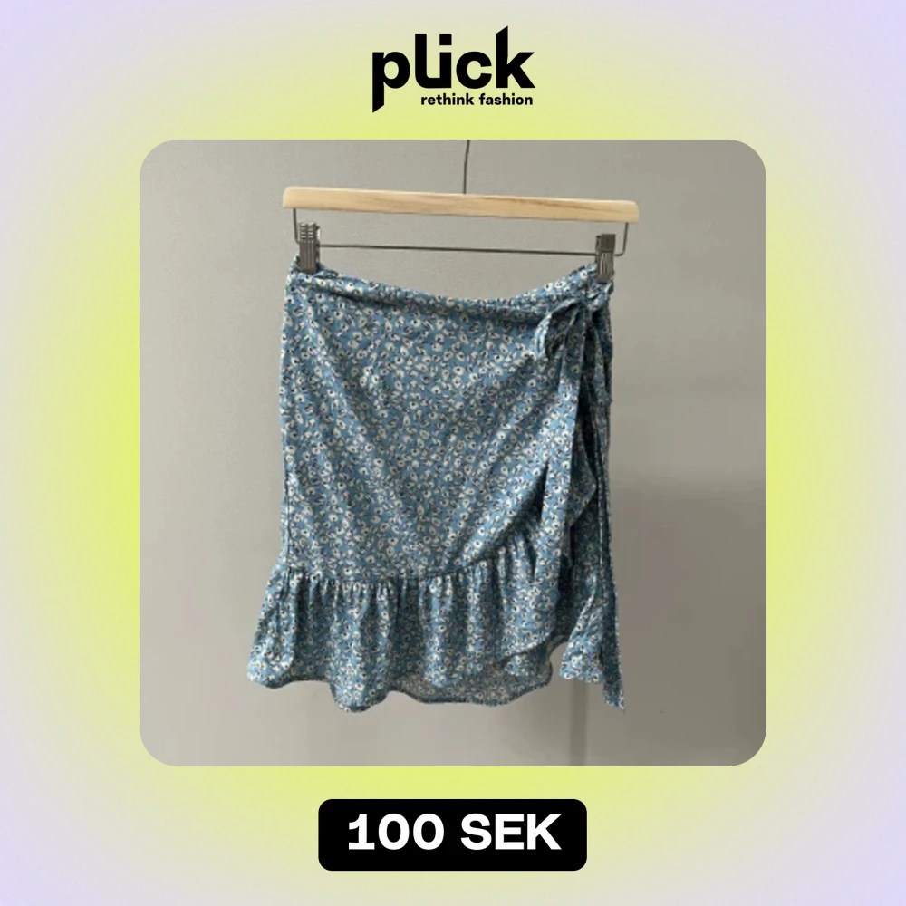 Blo kjol med vita blommor på. Från Only i storlek L. Man knyter det översta ”lagret” på framsidan av kjolen i sidan, kan skicka bild om det önskas. Knappt använd.