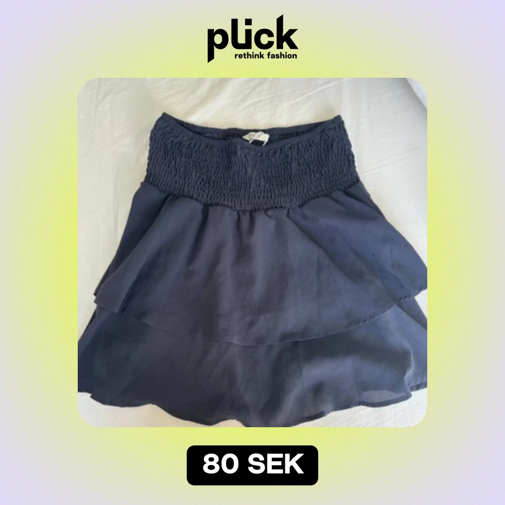 Blåvit kortkjol från Gina Tricot - Supersöt kortkjol från Gina Tricot i blått och vitt med ett coolt mönster. Kjolen har smockad midja och volanger som ger en skön och trendig look. Perfekt för dig som gillar att sticka ut med mönster och vill ha en bekväm kjol med lite extra volym.