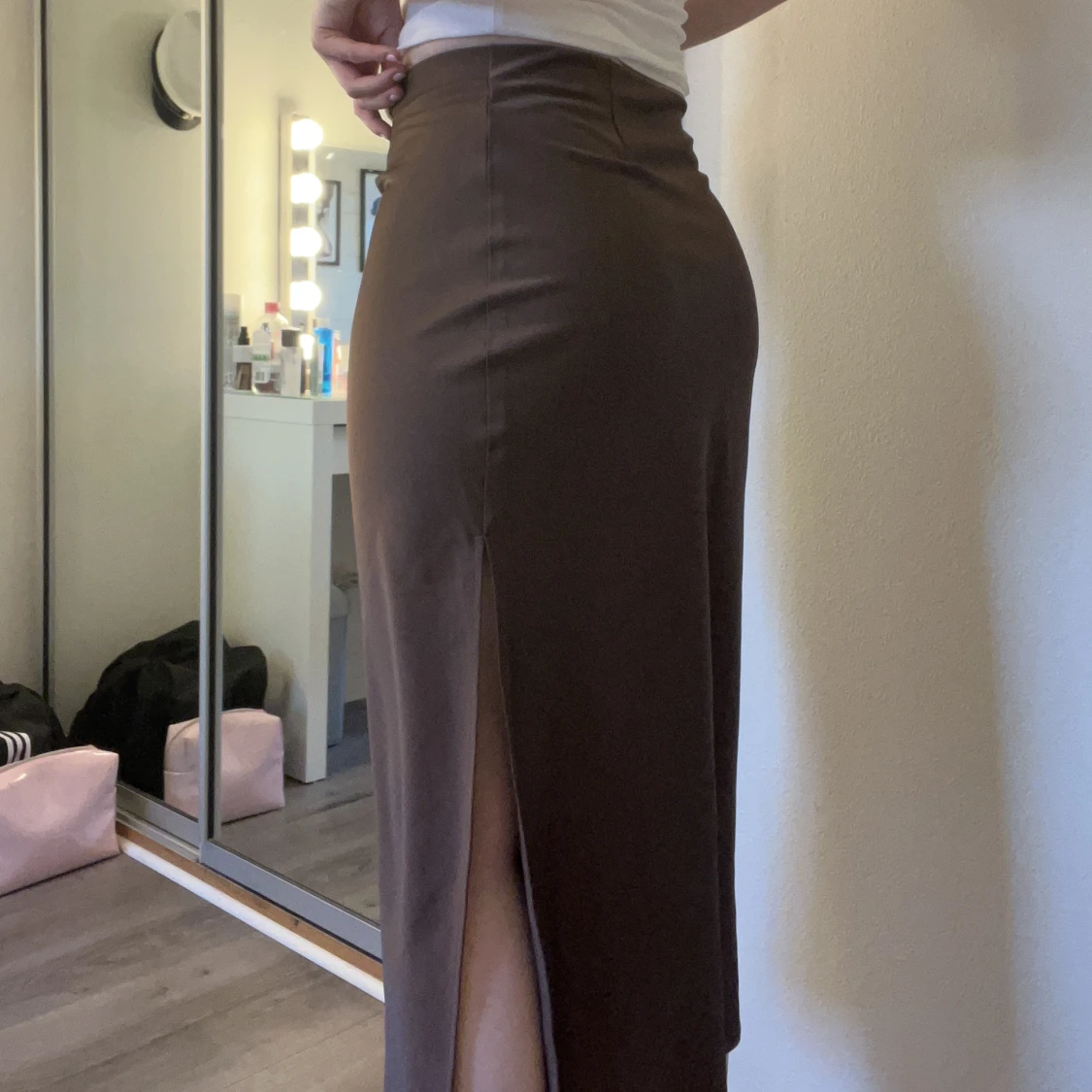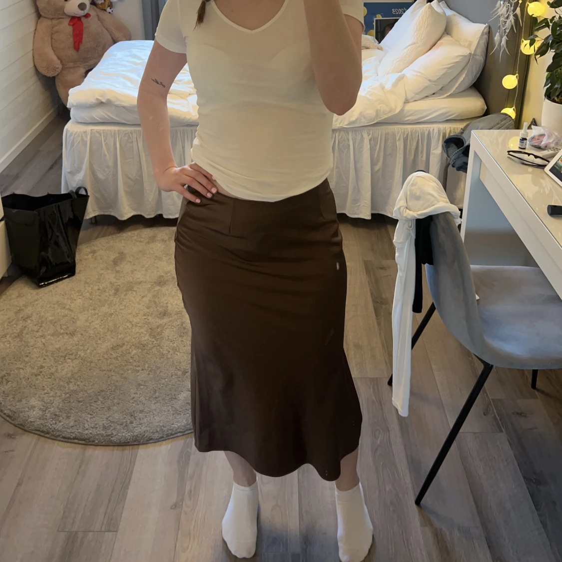 Jag säljer denna fina bruna silkes kjol💕💕. Använd få gånger men kommer inte längre till användning. Den är från Bikbok i strl XS, jag är 170 lång.