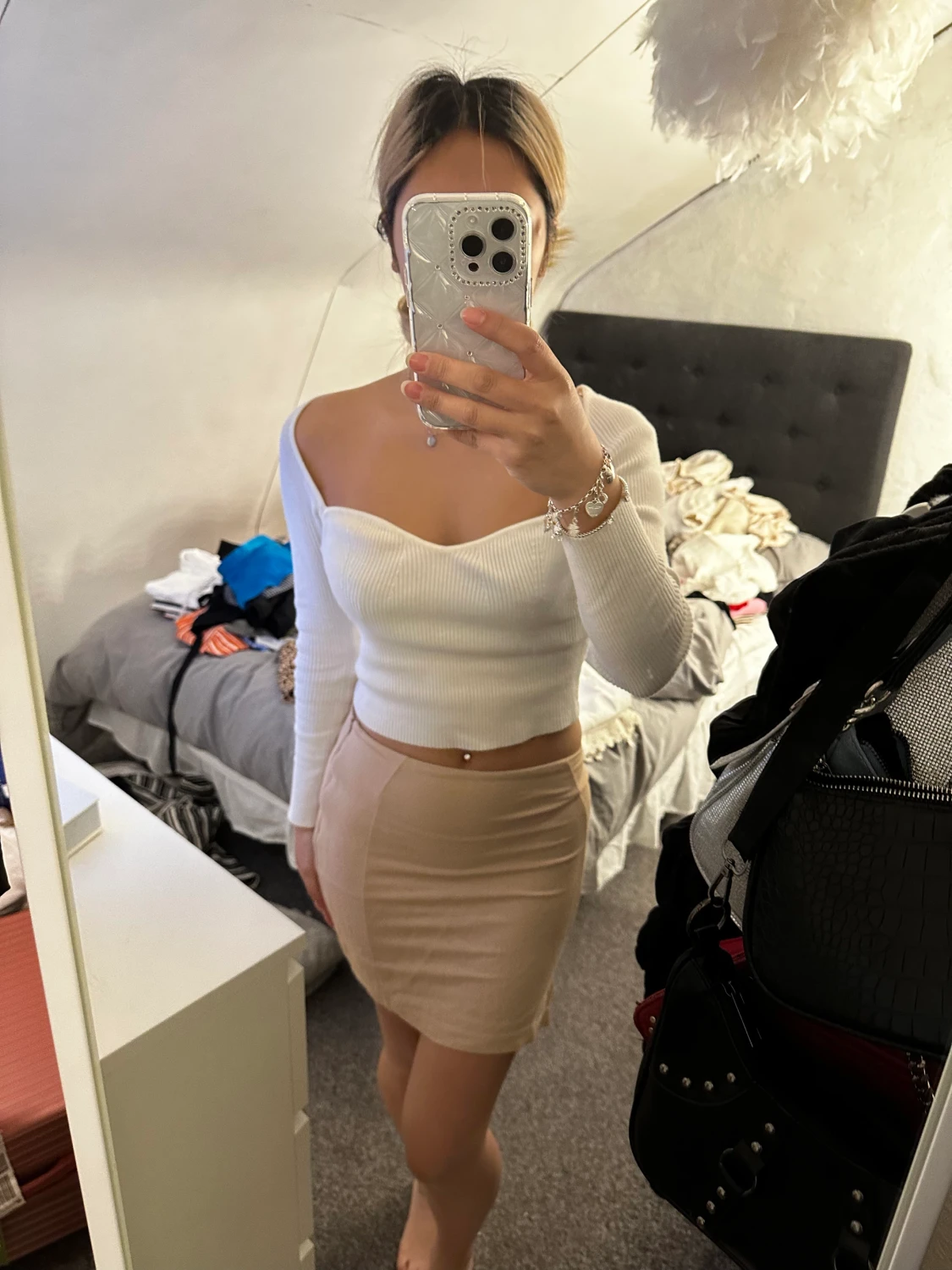 En beige fin kjol som aldrig ha kommit till användning. Storlek Xs men passar också S.
