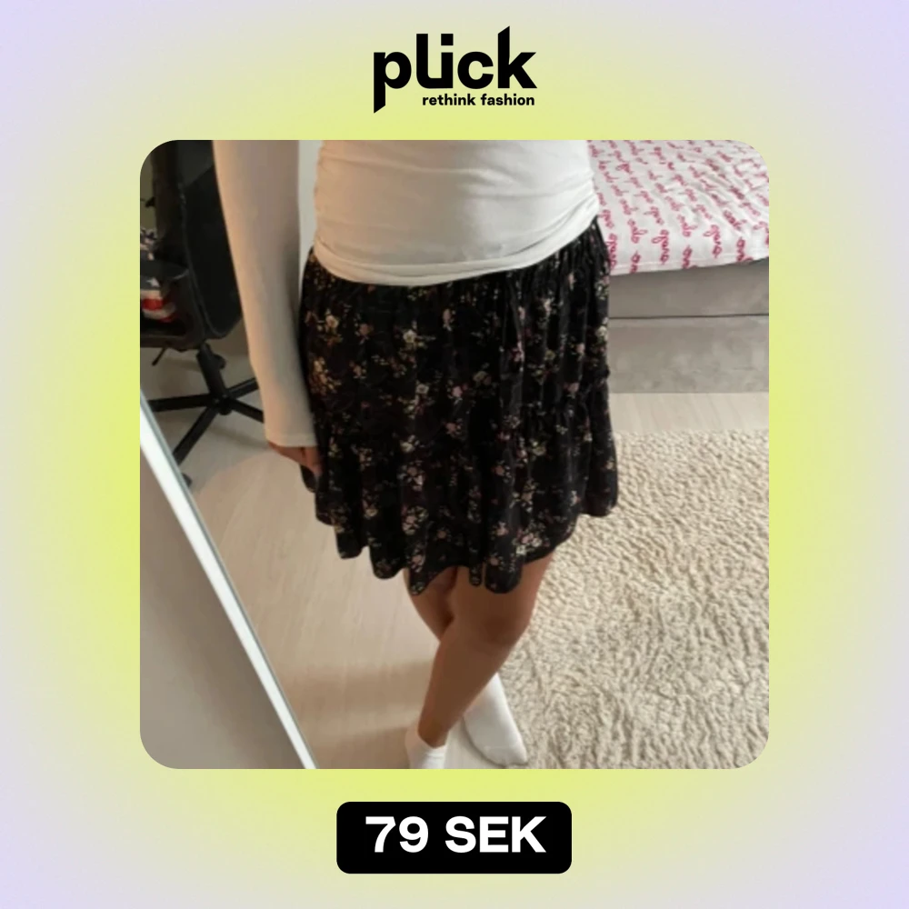 En svart kort kjol med blommigt mönster på! Lite tight högst upp men inget som stör en!❤️
