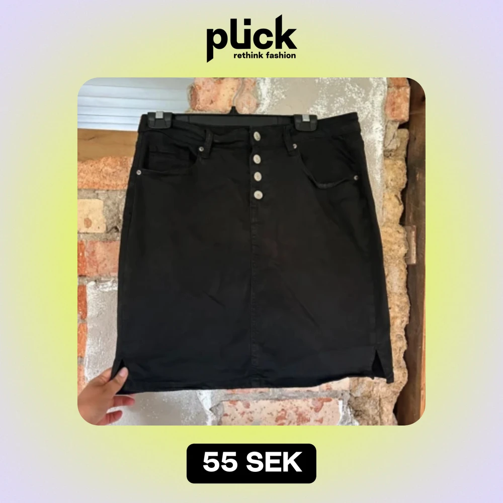 Svart kjol. Storlek 42, väldigt stretchigt tyg så skulle mycket väl passa 44 med.