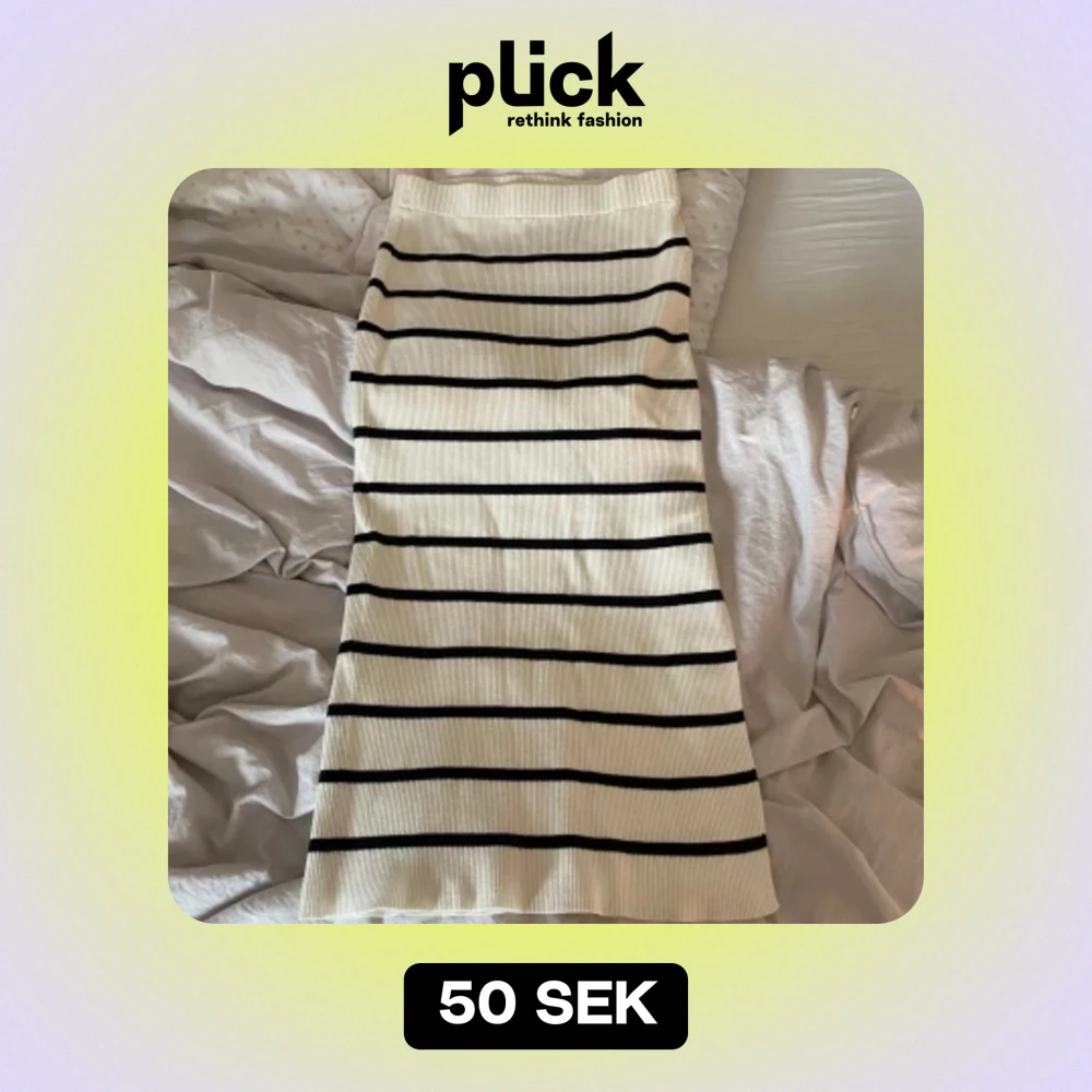 Randig kjol med en slit på sidan. Går till smalbenen på mig som är 165 och sitter verkligen så fint!