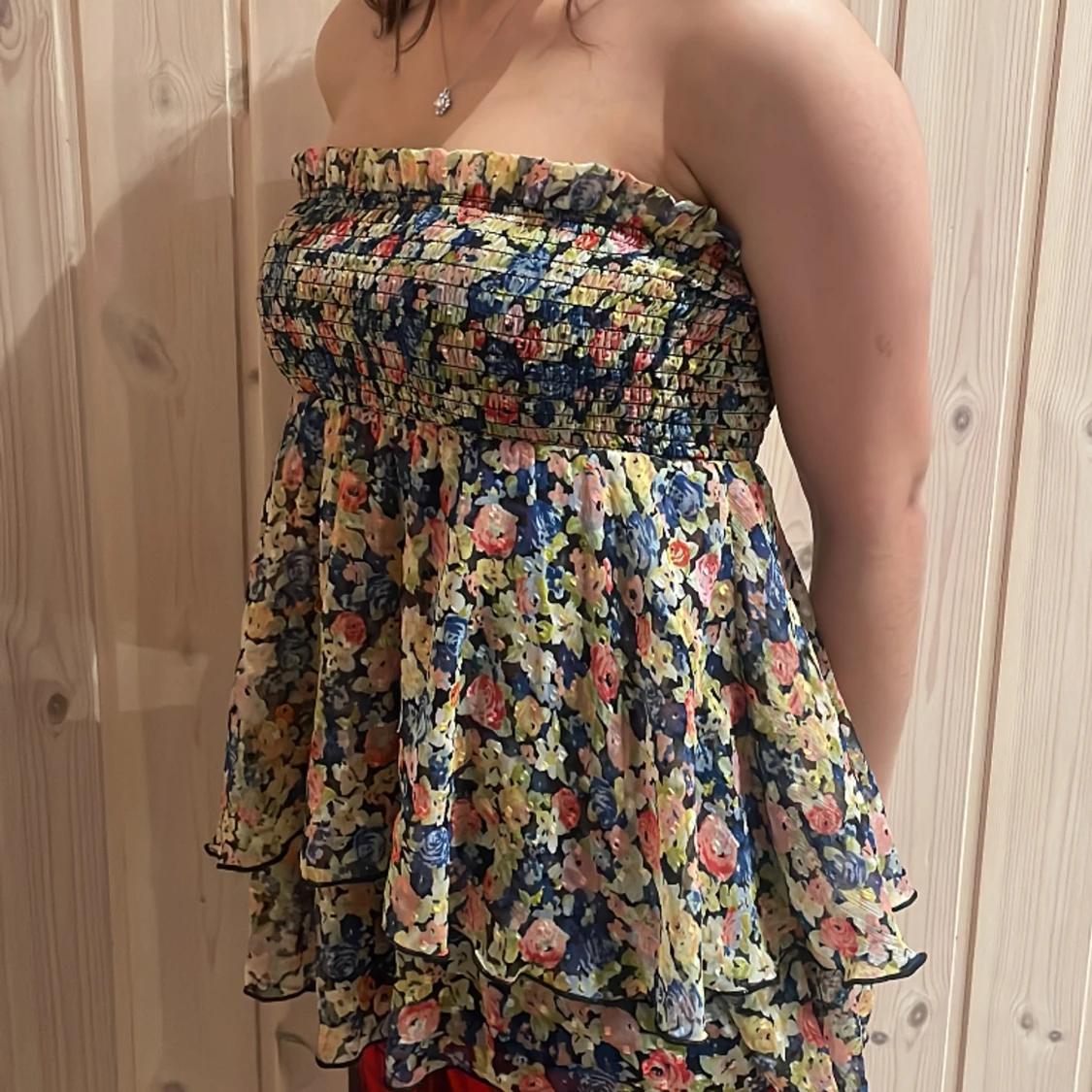 Fin blommig volang kjol men är även jättefin som tubtopp. Aldrig använt🌸🌸passar även s/ m