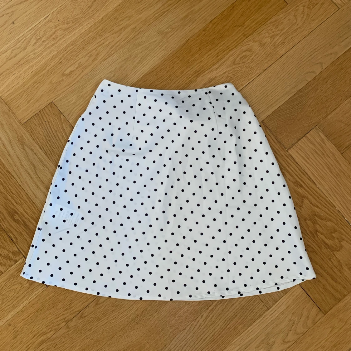 Säljer denna prickiga kjol från chiquelle. Aldrig använd. Tyget är i polyester, satin liknande. Kan mötas upp eller så står köparen för frakten!