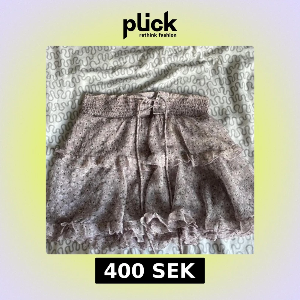 Supersöt kort kjol från STR i ljuslila med små blommor. Kjolen har volanger, smock i midjan och knytband framtill. Perfekt för vår och sommar.