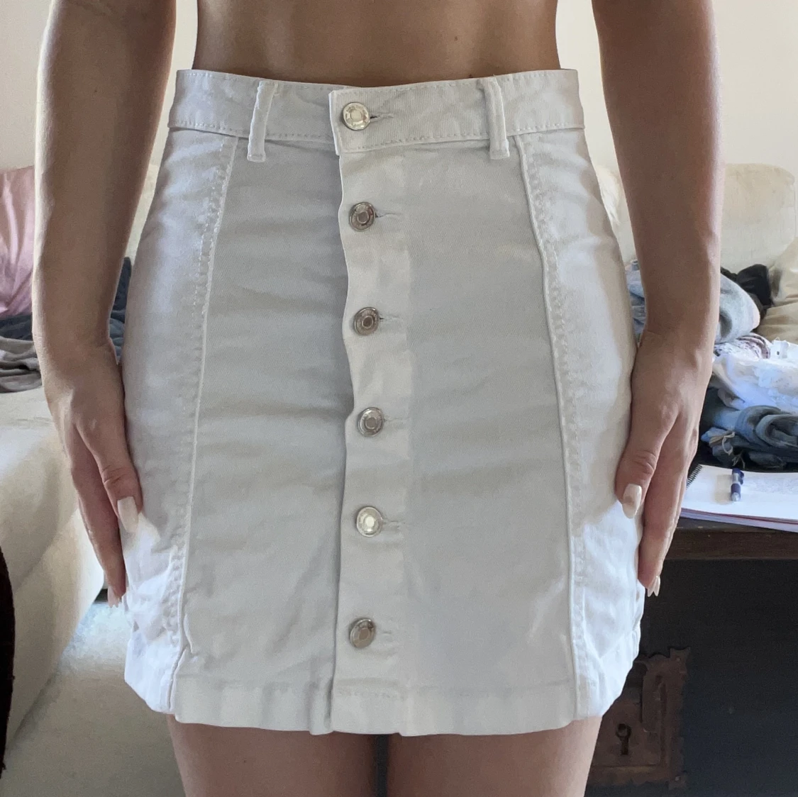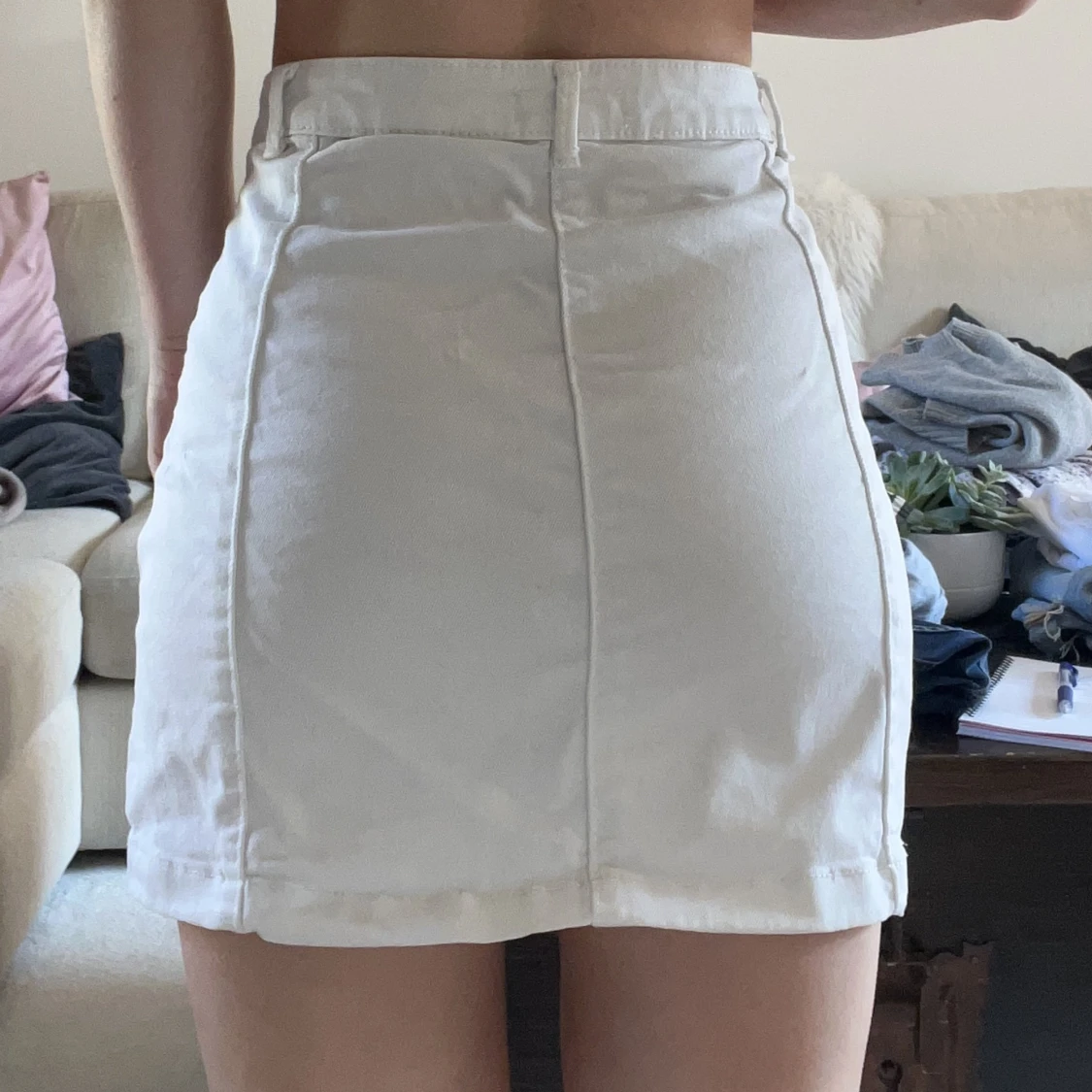 Vit jeanskjol från Gina Tricot i storlek 36. I fint skick. Inga slitningar eller missfärgningar