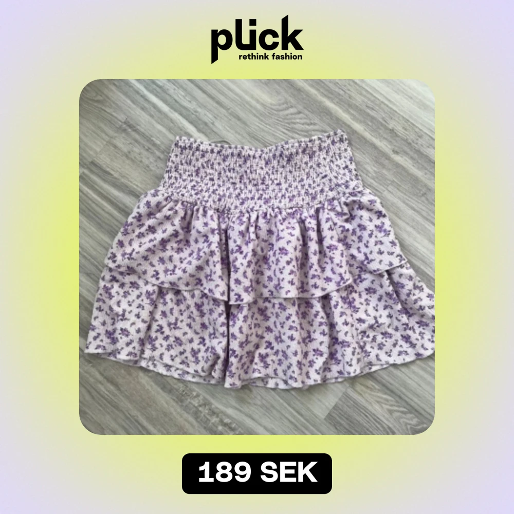 Säljer en superfin lila blommig kjol från Gina Tricot i storlek S. Kjolen har en elastisk midja och volanger. Perfekt för sommaren eller våren! Materialet är mjukt och bekvämt, och mönstret är små blommor i olika nyanser av lila på en ljus bakgrund.💝