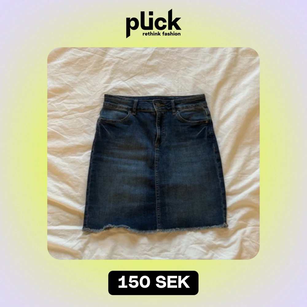 Snygg Jeanskjol som nu är förliten för mig. Lappen är bortklippt men är ganska säker på att de är en XS/S. Tyget är lite klippt i på insidan från lappen som man kan se på bilden men det är inget som syns utanpå🌸🌸 stretchigt material och sitter tajt.