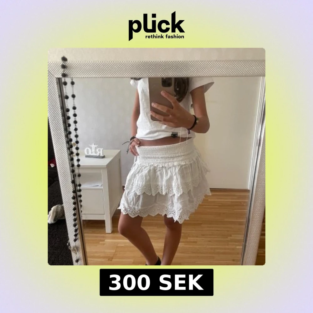 Supersöt vit kortkjol med bred resår i midjan och flera lager volanger. Köpt på Bikbok i storlek XS