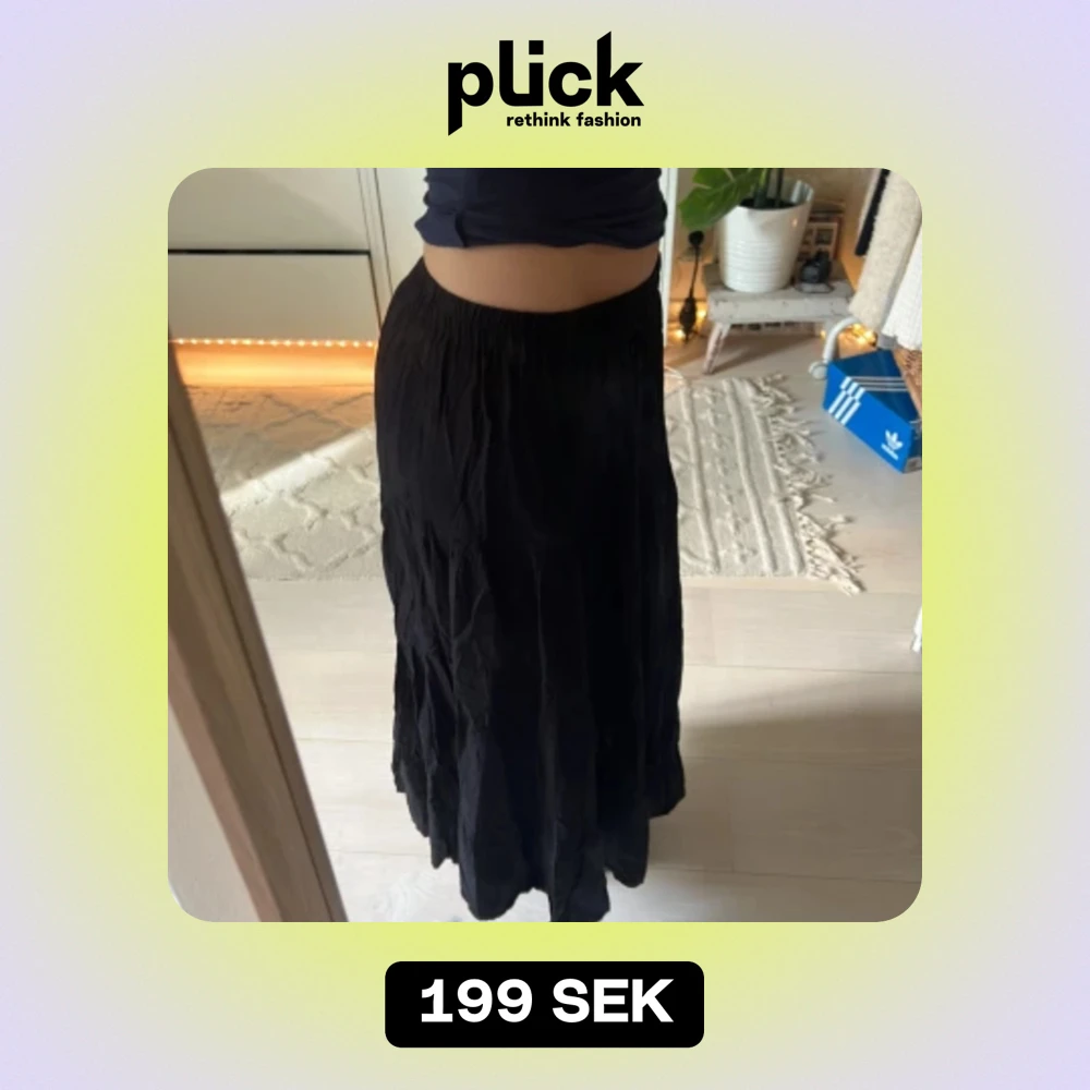 Svart långkjol som är köpt i en butik på Bali🙌🏼Super fin kjol men säljer då den tyvärr är för kort för mig💓Står ingen storlek men skulle säga XXS/XS/S