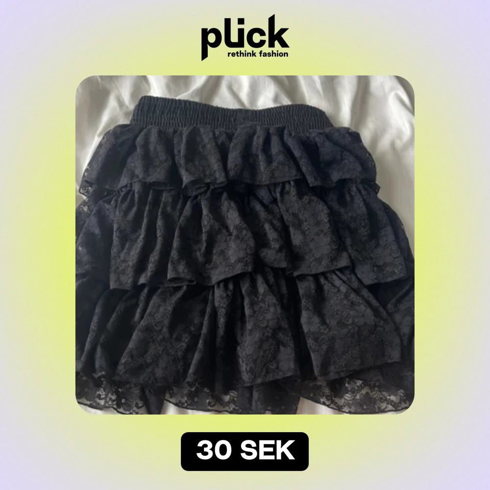 JĂ€tte gullig svart kjol!đ€ den har blommor som design. Storlek S/M passar mig som Ă€r XXS/XS och sĂ€kert större!đ€